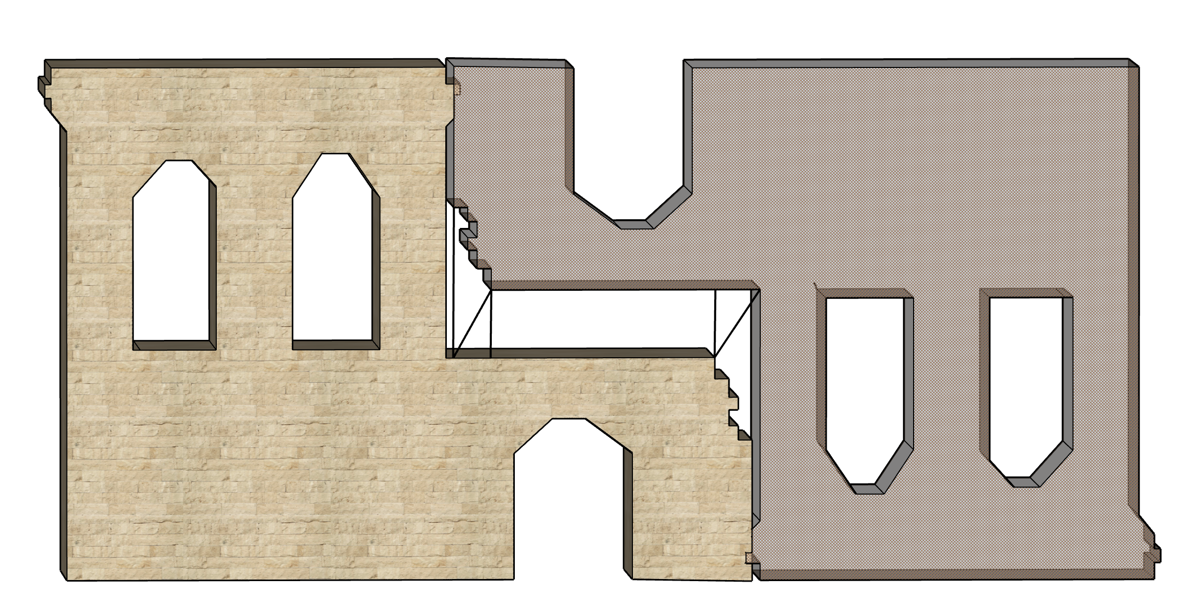 tadao ando exterior shot soft touch steel bar imitation of the building on the left which is old ruined house from limestone architecture