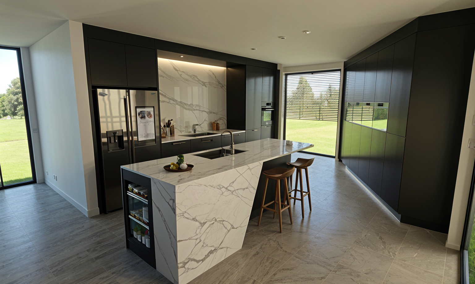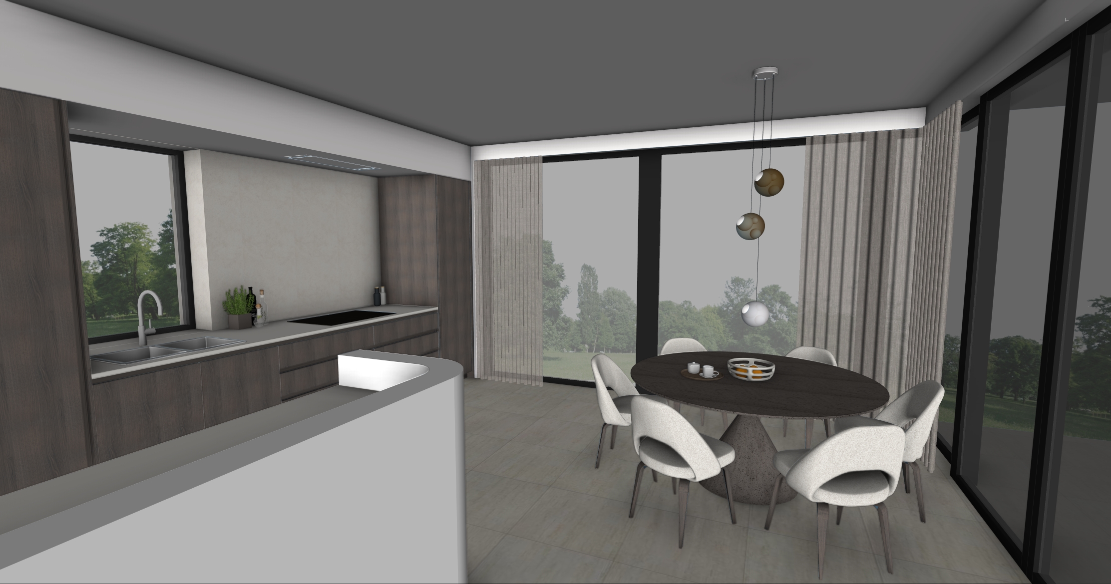 photorealistic render of this image keep form and materials natural proportions natural daylight garden view