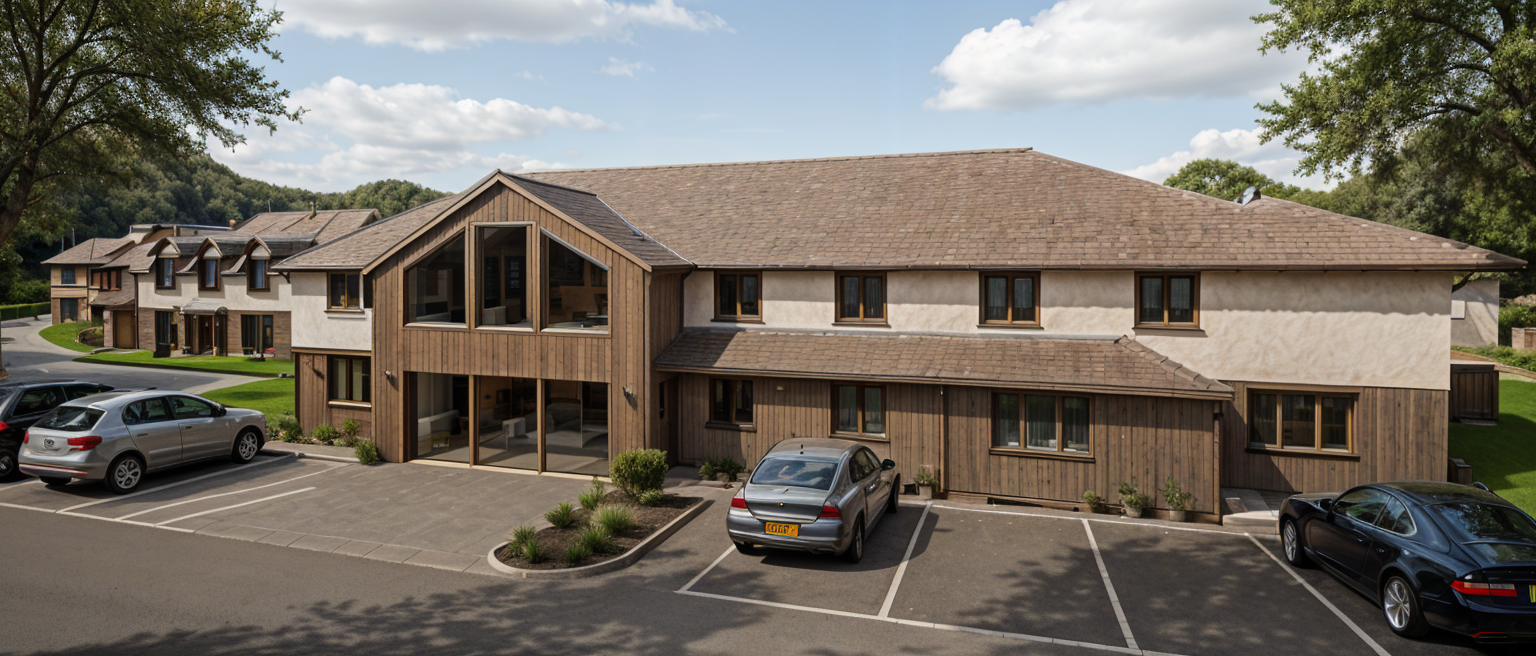 outdoor shoping center in dubai palms sand stone facadeterraced green roof ble sky background architecture