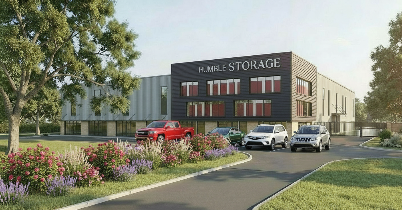 add the following vehicles parked in front of the building in front of left hand 5 windows red pickup truck green camry white suv silver suv