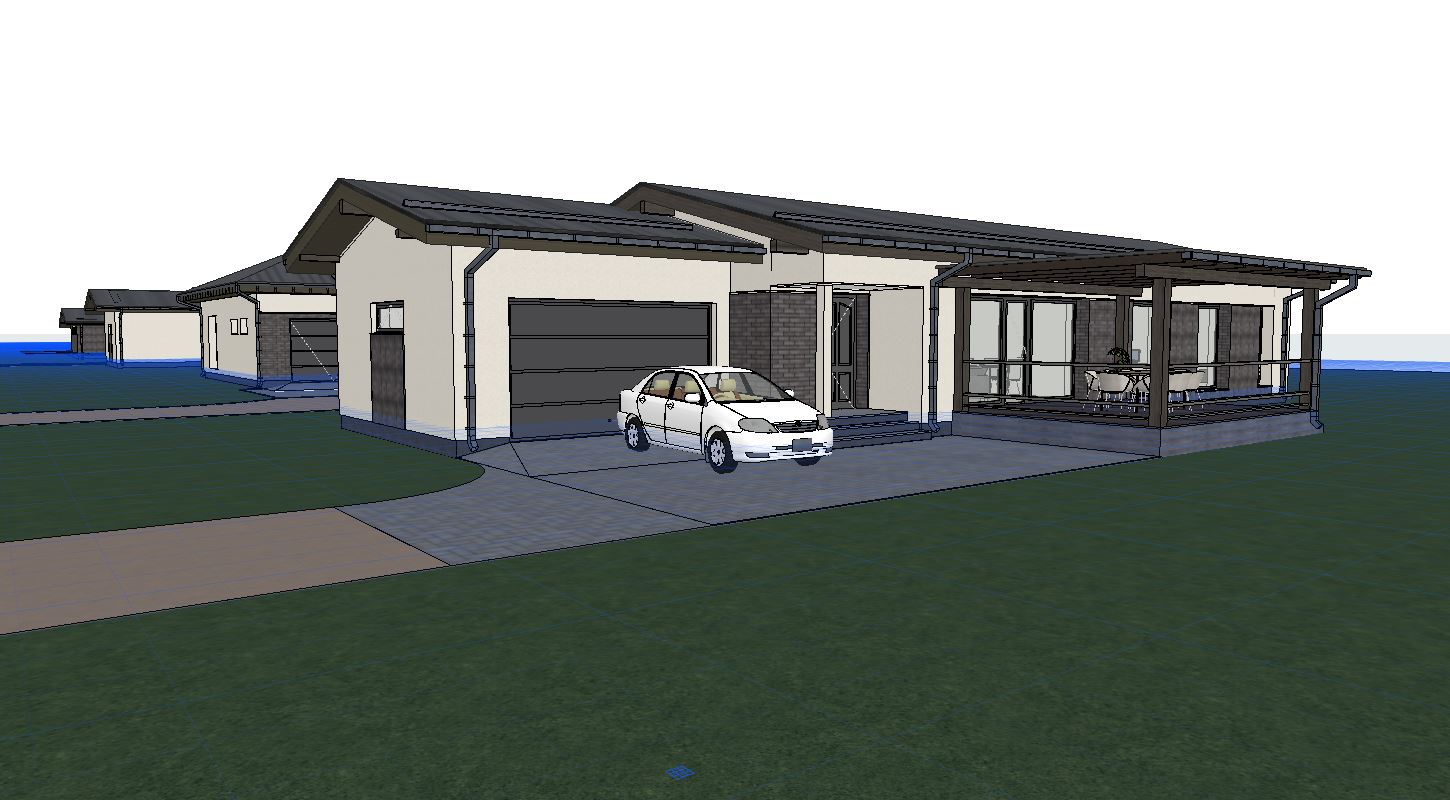 facades light plaster and gray clinker base dark gray plaster black car