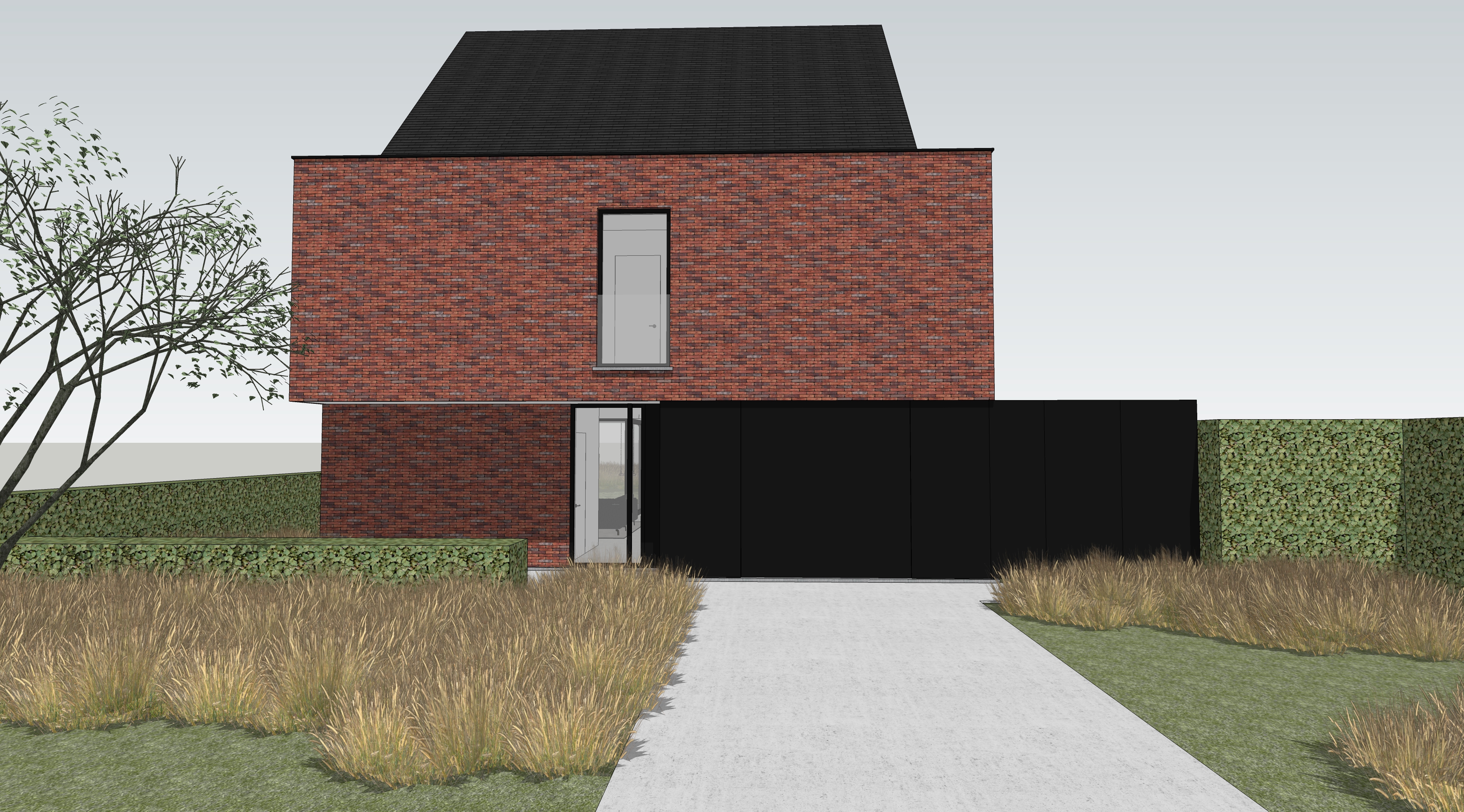 the wood needs to be a little darker the facade a little more grey instead of brown but keep the difference between the darker en the lighter facade add real people
