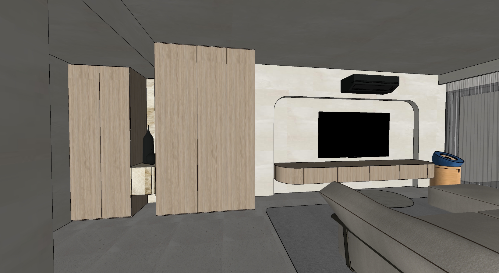 render this image in a realistic style maintaining the exact same composition furnishings and design without adding or removing elements