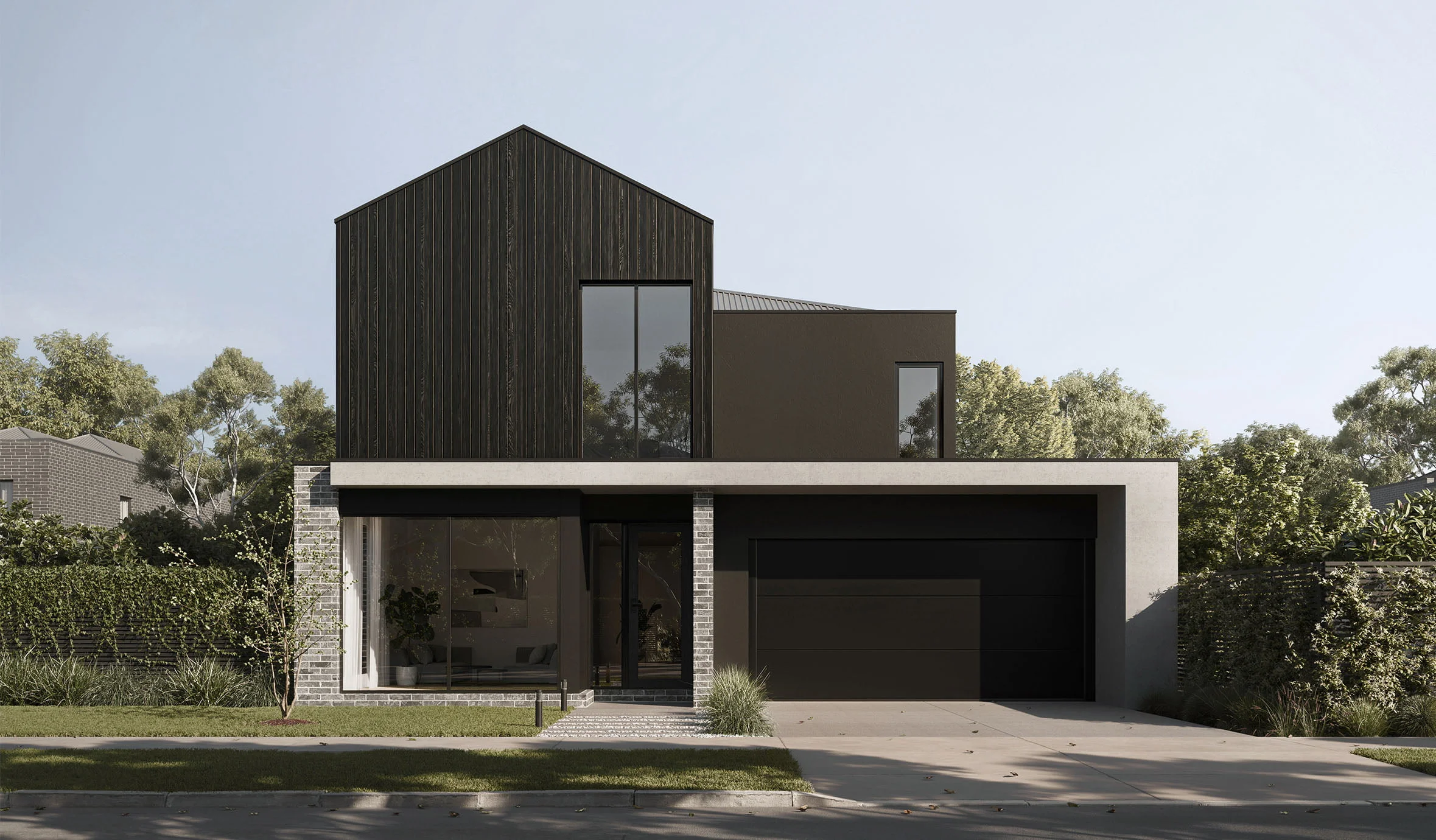 exterior shot light timber on on top story light timber on garage door front door