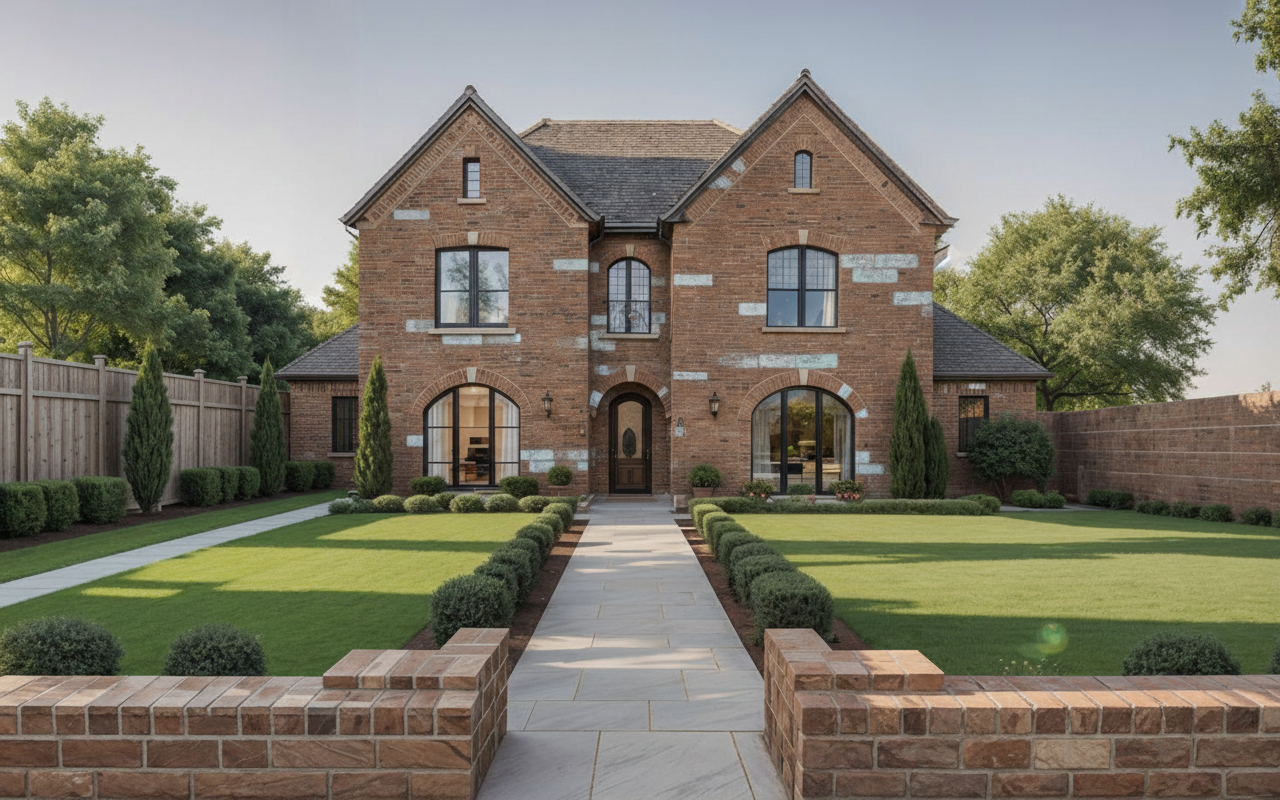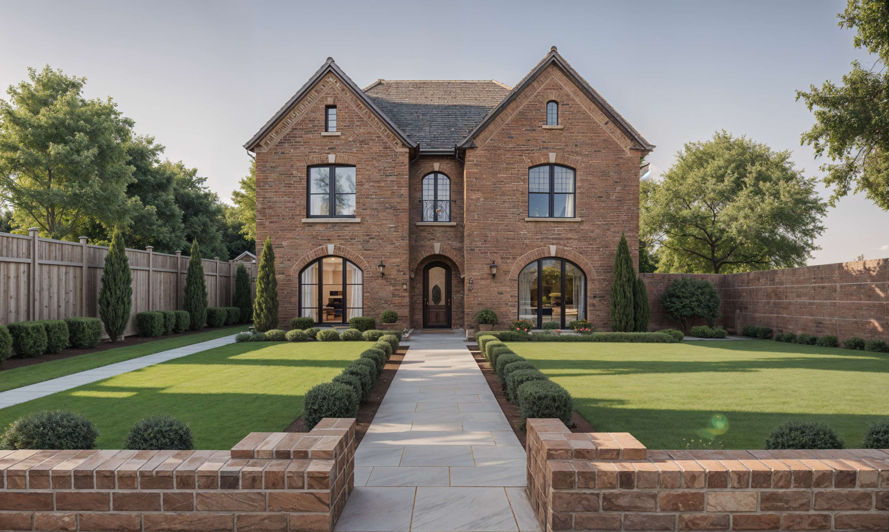 a manicured lawn layered flower beds low maintenance shrubs native plants pretty pathway leading to the entrance
