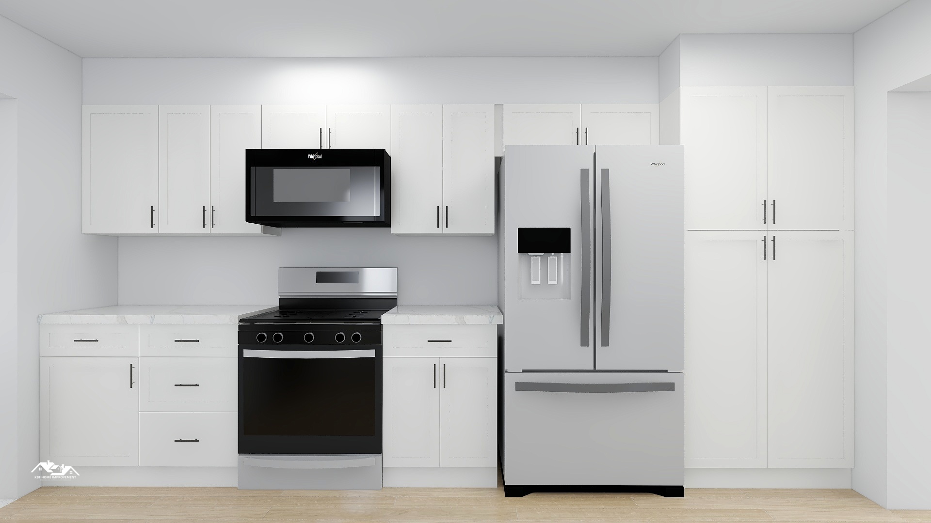 add recess lighting to the ceiling add kitchen accessories to have a warm feeling