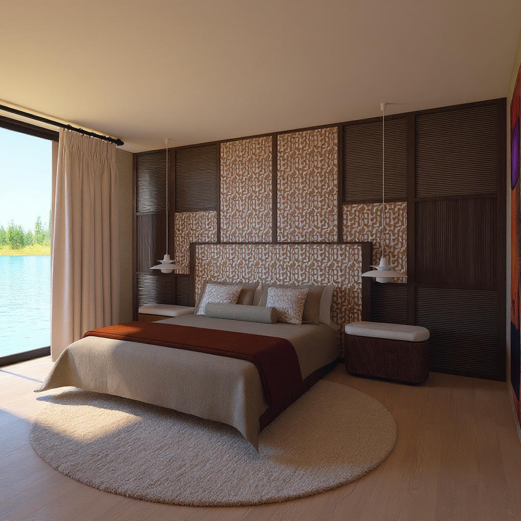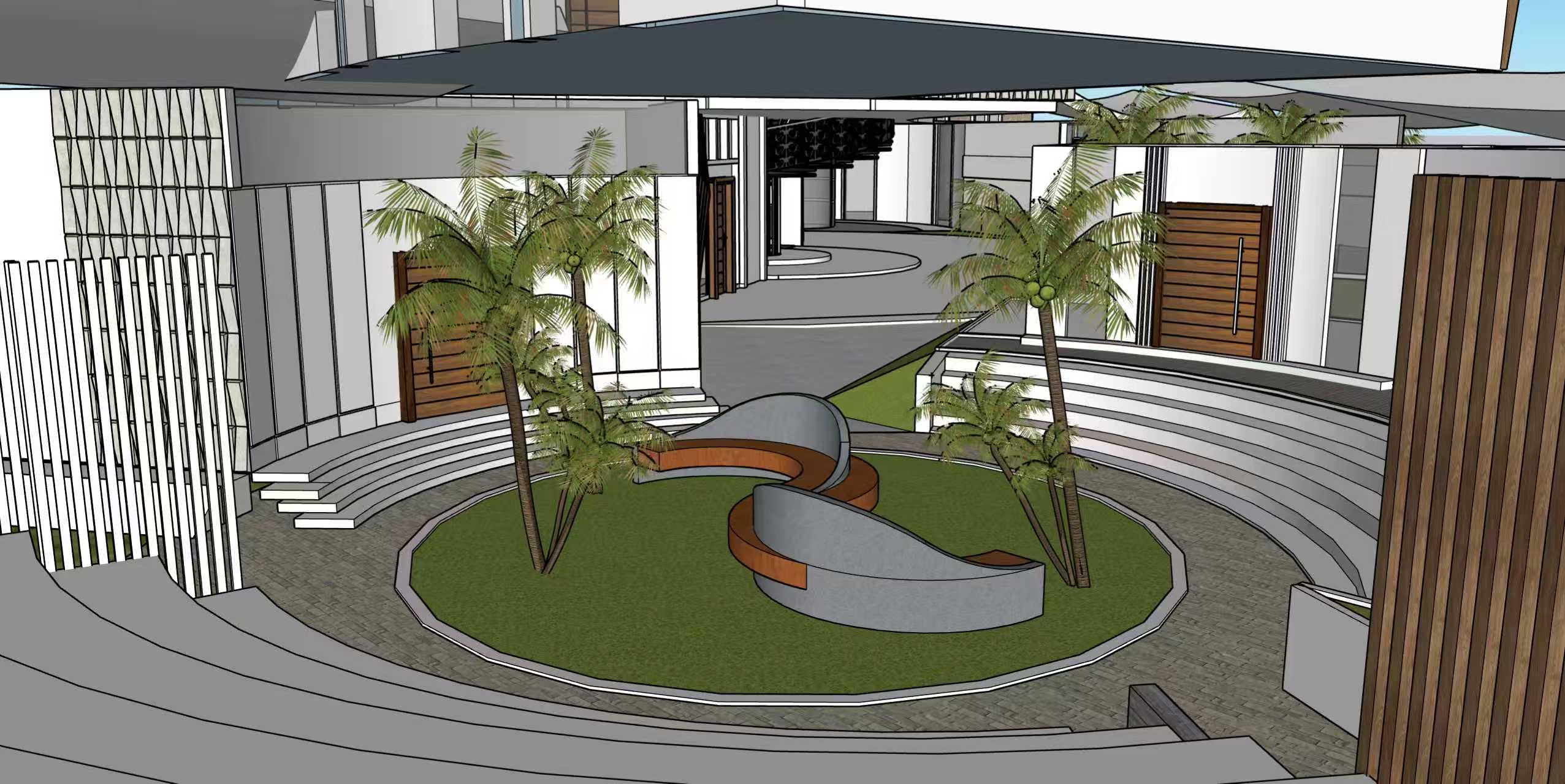 modernist perspective shot use nature material wood stone concrete coziness and greenery set in the evening with soft gentle sunlight make it a community center architecture