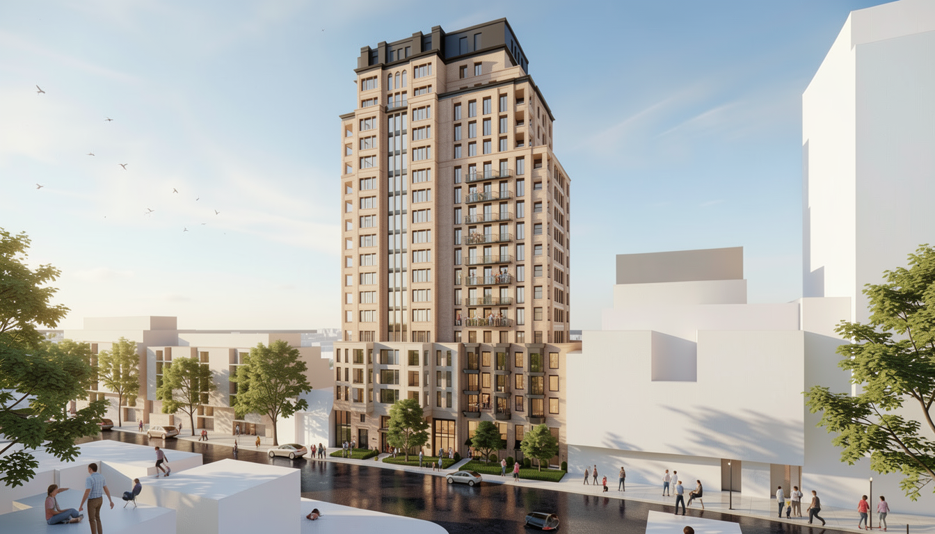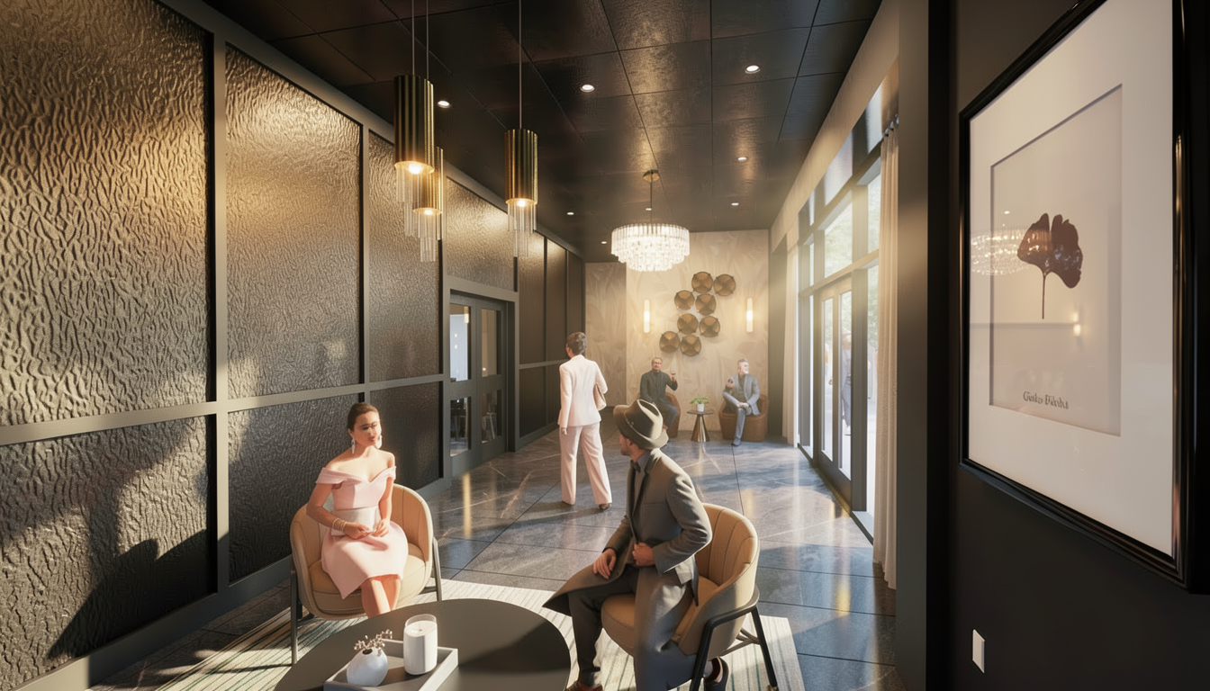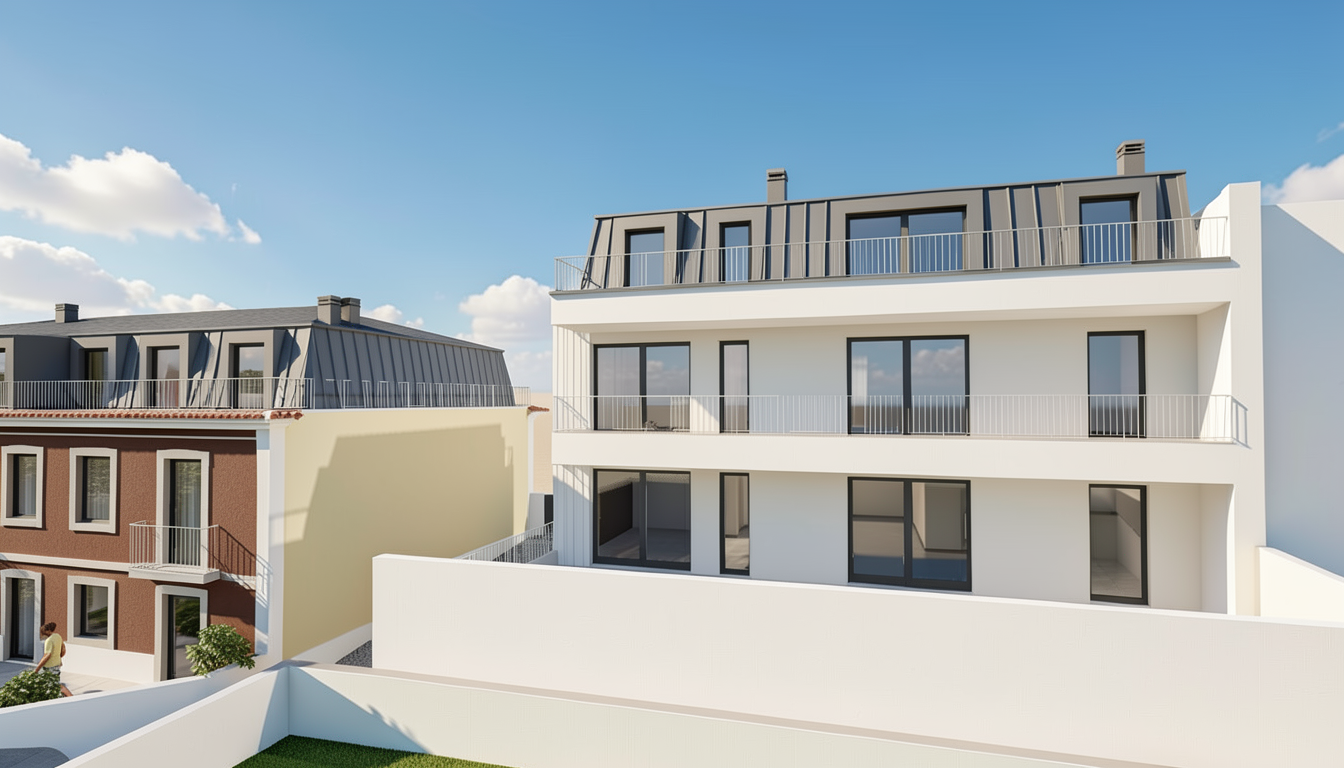 a modern two story farmhouse with dark green vertical board and batten siding black standing seam metal roofing exposed wooden truss details on the rear gable and natural timber posts supporting the full length covered patio retain the exact structure window arrangement patio columns balcony rooflines foundation height and proportions exactly as shown in the reference image add a smooth concrete front driveway extending toward the house integrated naturally into the sloped terrain surround the property with a lush dense forest of tall mixed evergreens and hardwoods place the sun behind the trees so warm golden sunlight beams through the branches casting soft rays and subtle dappled highlights across the patio siding and grass create ultra realistic lighting crisp shadows detailed textures in the wood siding and glass reflections and a vibrant clear sky with light atmospheric depth render in hyper realistic architectural visualization quality 8k resolution