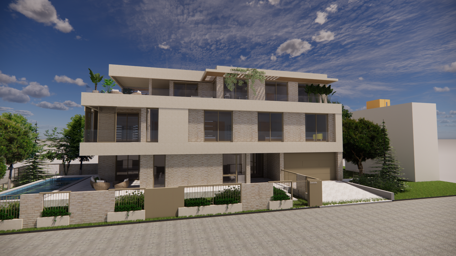 add more light add more trees make brick more detailed enhance white aurfaces on the building