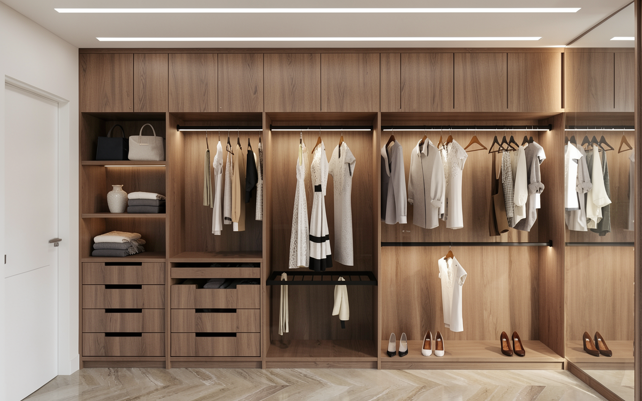 add a dark black wooden door on the left side of the image where the natural light enters the wood grain should be clearly visible and natural place the sink integrated into the cabinetry on the left side of the image position the oven and the cooktop centered in the composition include a washing machine integrated into a niche below the countertop