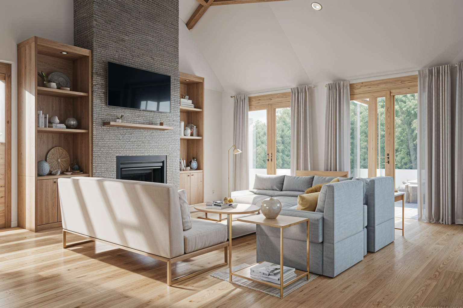asphalt shingles dark grey eggshell white stucco on exterior bright light maintain geometry