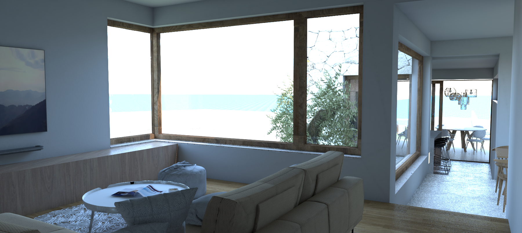 make this render realistic warm light cosy interior