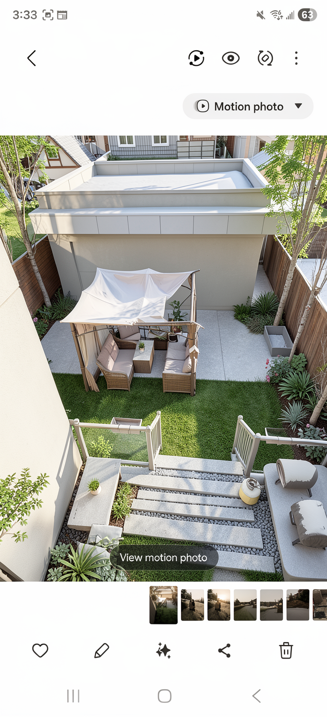 create an outdoor space for me with some concrete flowers square gazebo and wire pit