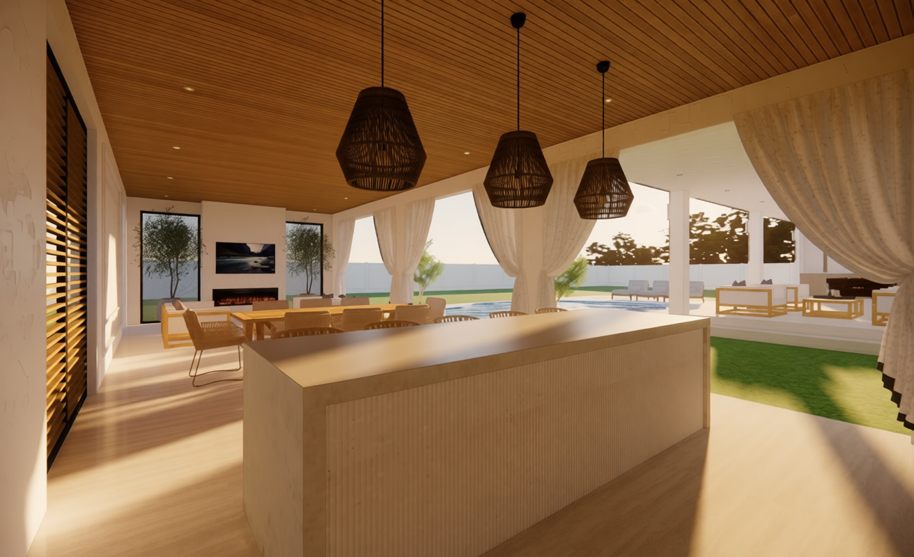 create high resolution photo with plush trees and bushes with vibrant sky create a country french blue shutters with alabaster white lap siding and brick shown a french country blend upper left gable to have shake siding like orihinal