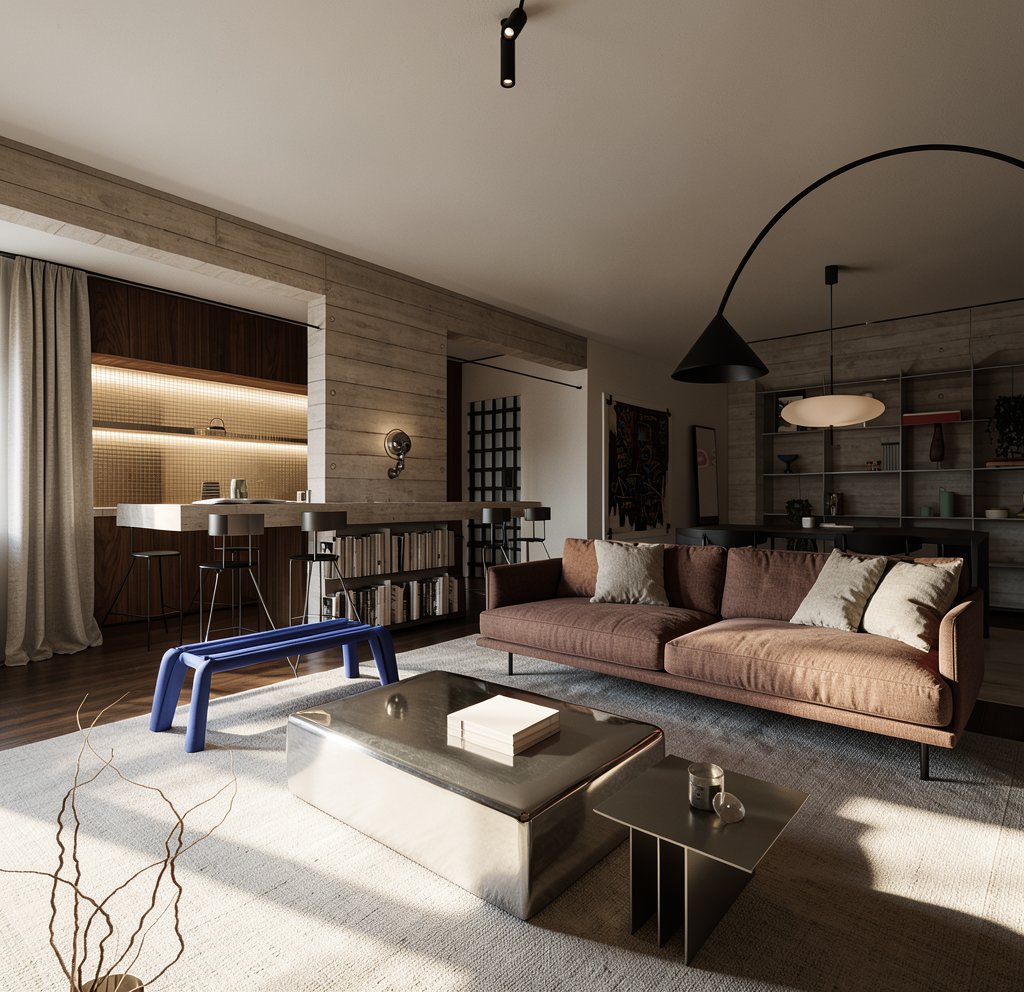 sitting area arch windows arch blue tile accent wall carpet floor