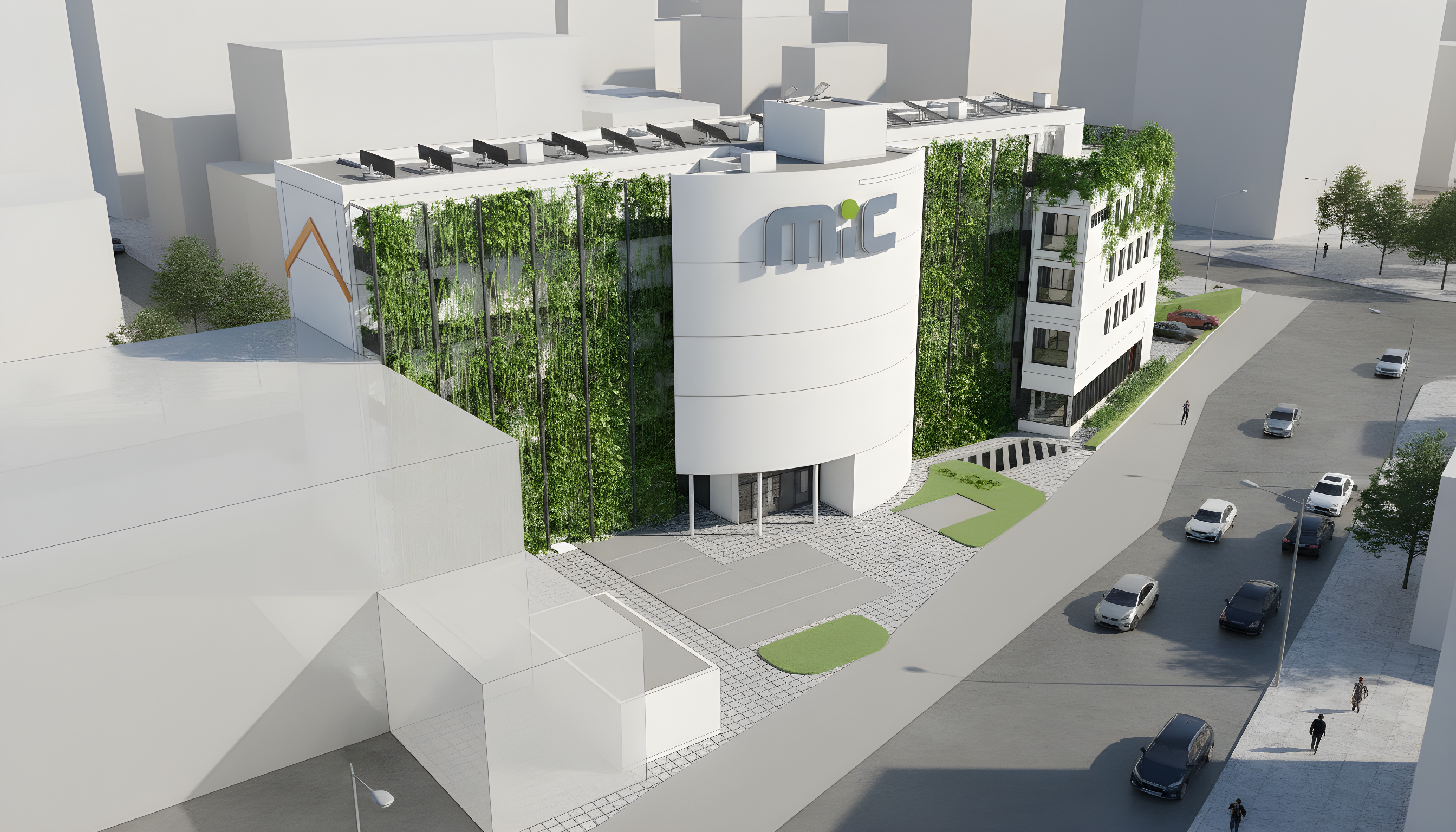 exterior shot gestalte die fassade mit einem raster erdgeschoss etwas dunkler die terrasse soll etwas begr nt sein