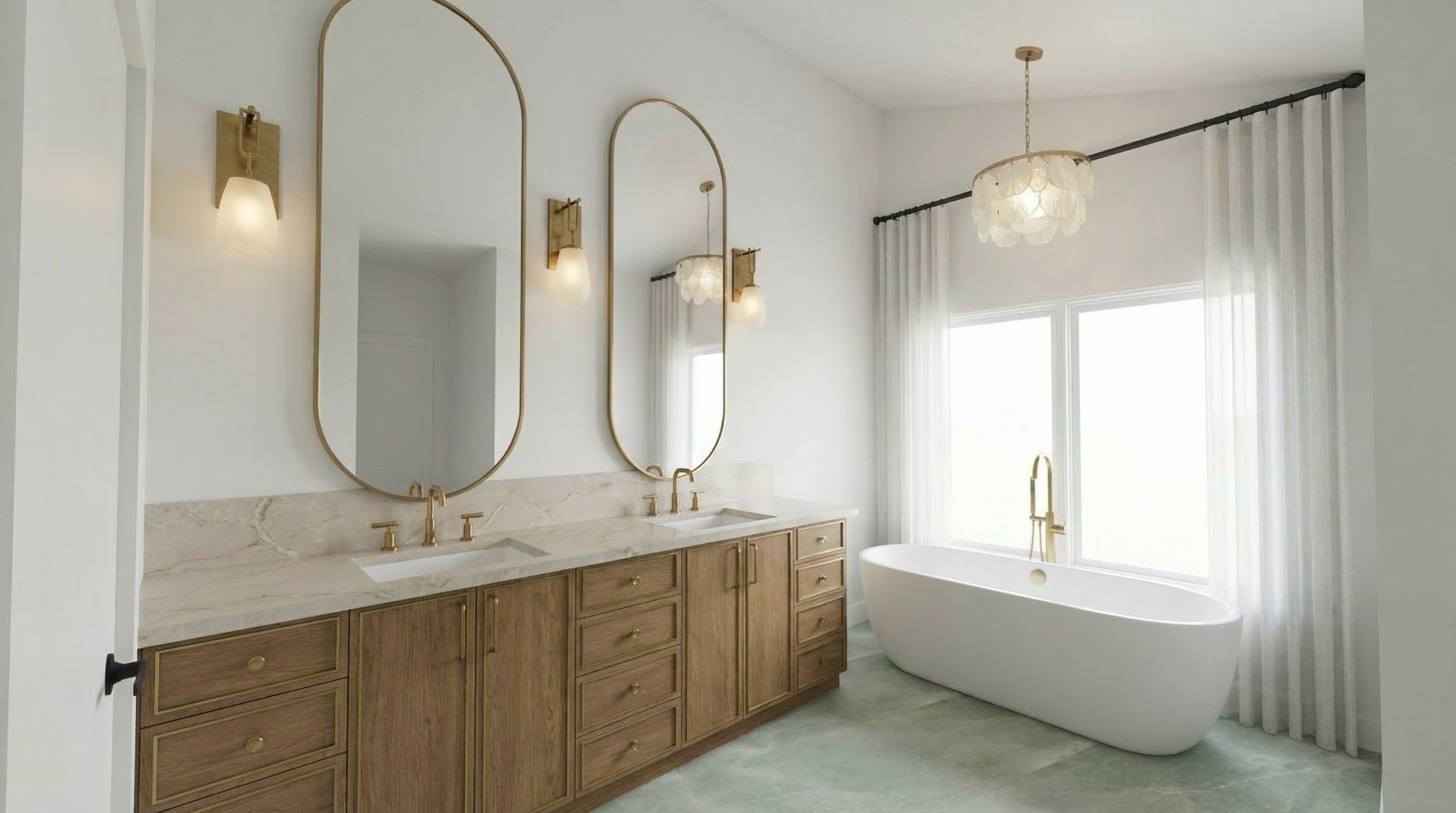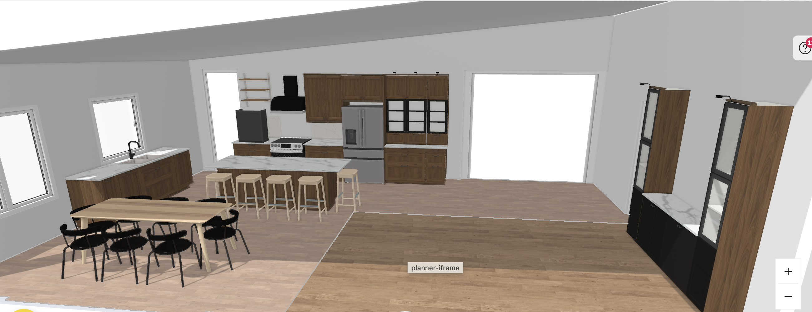 need to correct the last rendering so below is the same prompt copy pasted but this time revise these parts go back to the living room furniture going in the living room not the foyer area the large 8x11 wall opening should not have any windows that opening leads to the main door foyer out of scope for this design replace the wall organizer pillars and credenza with a modern electric fireplace solution that s what the living room couch and chairs should be entered around using the virtual ikea floorpan image design this kitchen area note the cutouts of the walls are to signal a window or door design a fully furnished residential interior based on the provided 2d floor plan converting it into a cohesive 3d interior design or a high detail 2d interior layout match the overall aesthetic mood materials and color palette of the reference image provided focus on a cohesive realistic living space with carefully selected furniture lighting textures and finishes prioritize functional furniture placement natural circulation paths and realistic scale use soft natural lighting layered ambient and accent lighting and materials that enhance warmth and depth the design should feel livable modern and intentional with attention to detail in cabinetry upholstery flooring wall finishes and decor render from a human eye level perspective or clean architectural top down view if 2d with accurate proportions realistic shadows and high material fidelity i have a reference picture too if that would help please let me share specific prompts to revise this rendering 1 add wood beams attached to ceiling running the length of the room from left to right 2 replace the door on the right with a large arched opening measuring 11 ft high and 8 ft wide 3 replace the door on the left kitchen with an arched doorway measuring 8 fee high 4 add furniture in the living room couch es to divide the living space from dining and add modern chairs plus an electric fireplace 5 change the window to black frames 6 is it possible to produce 2 images as final product one from