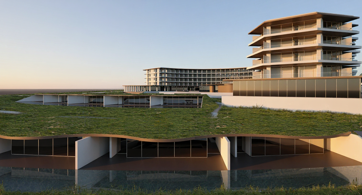 add on the right white wall in the lower portion a corten steel cladding with a slightly weathered warm brown orange patina integrate a series of wooden recessed containers natural or lightly smoked wood each softly backlit with warm indirect led light inside the containers place smooth white decorative stones neatly arranged with a clean and minimal aesthetic keep all proportions lighting and materials of the original scene unchanged and only modify the specified area architecture
