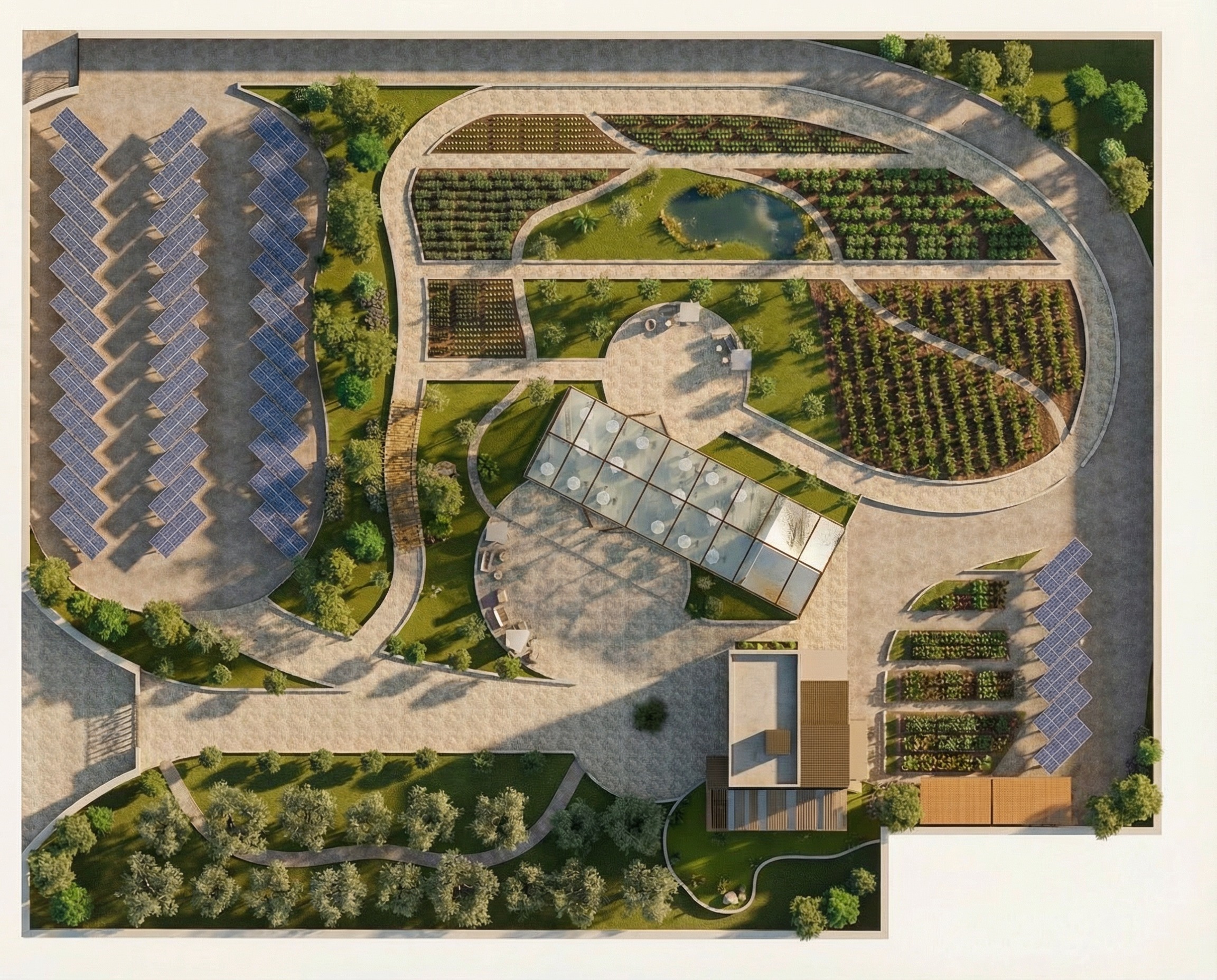 al posto della pianta singola nella piazzetta rotonda metti un ulivo