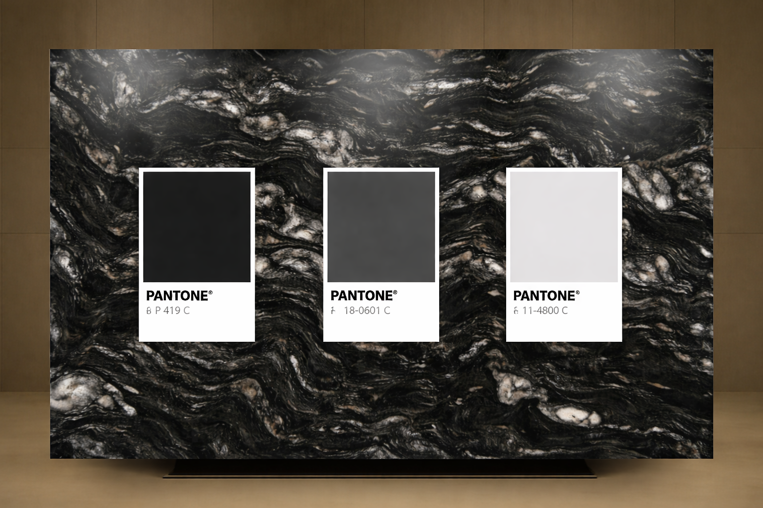 a bathroom rendering with this stone as the countertops focus on the vanity area apply a bold colorful wallpaper and high end fixtures for an editorial magazine advertisement