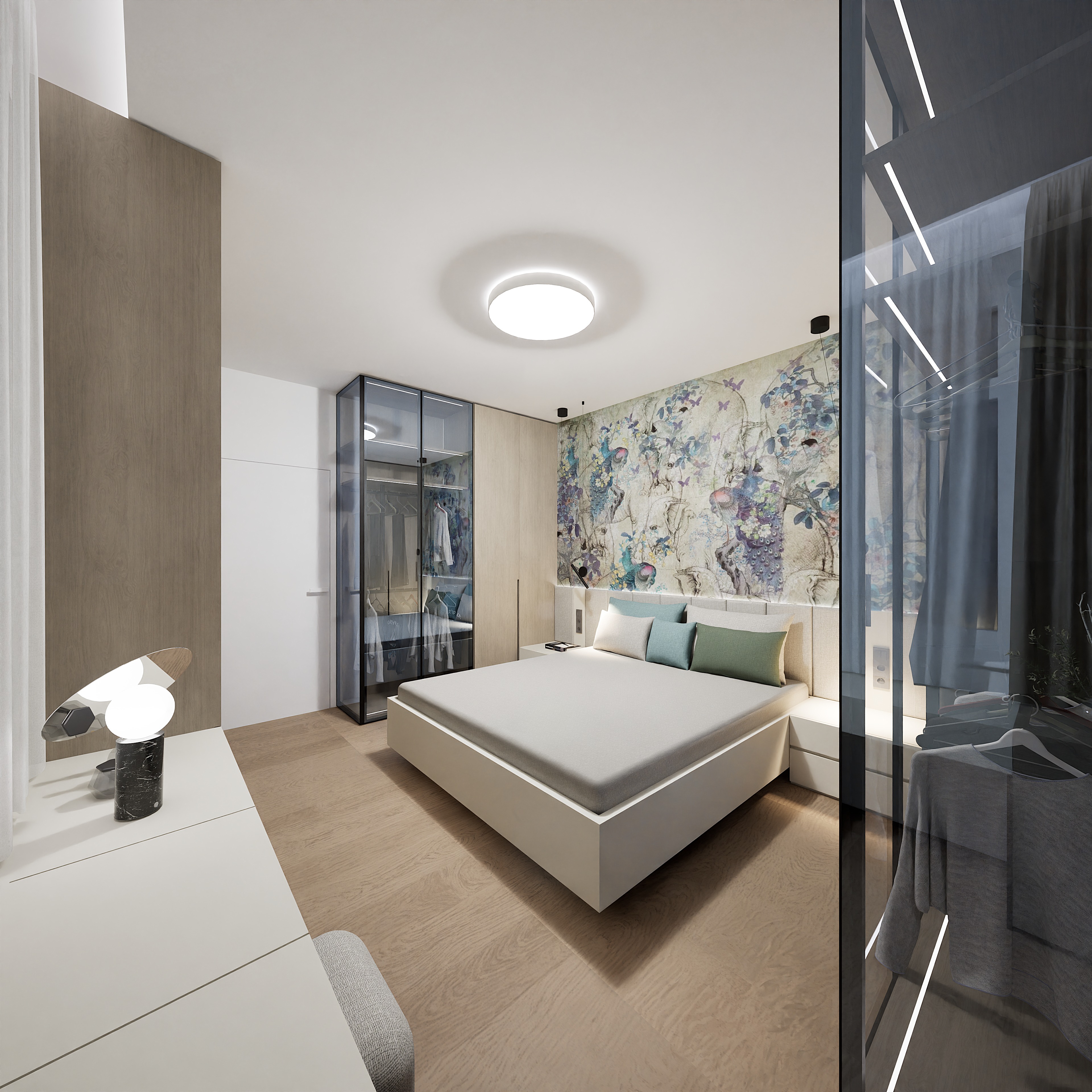 add light brown silky blanket on the bed make pilows more real with silk fabrick