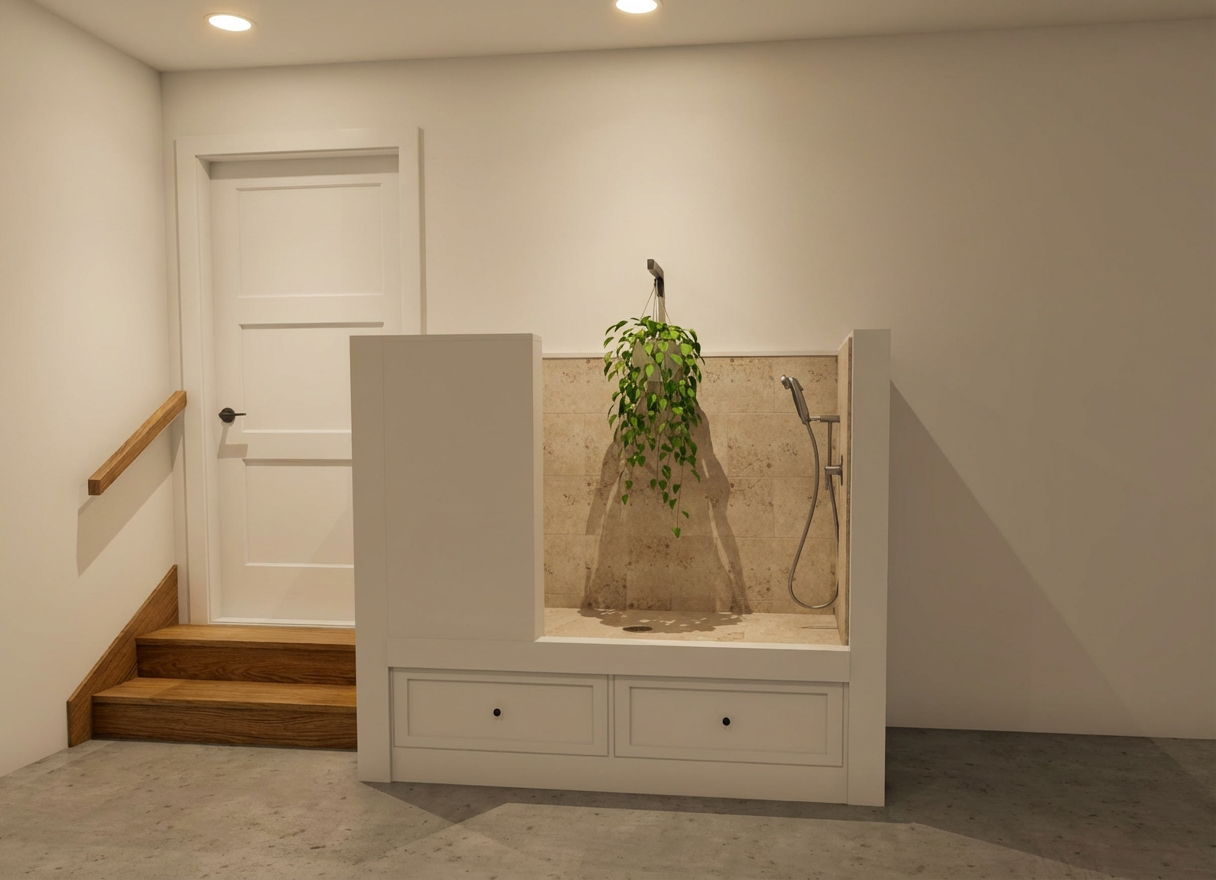 relight this interior scene using only natural daylight do not modify the architecture materials finishes furniture or camera position in any way all ceiling lights must remain turned off and no artificial light sources should be visible or contribute to the scene the space should appear illuminated exclusively by daylight entering through the existing windows whether visible or not in the render create a bright evenly lit atmosphere with soft diffused light that fills the entire room light should penetrate deeply into the space gently illuminating walls furniture and corners without leaving dark or heavy shadow areas avoid strong directional sunlight or harsh contrasts shadows should be soft subtle and low in contrast use balanced exposure so the scene feels luminous but still realistic avoid overexposure or blown highlights and ensure no areas are underexposed maintain accurate material colors with a neutral to slightly warm daylight tone whites should appear clean and clear not gray or yellow the final result should feel like a naturally bright daytime interior calm and airy with smooth light gradients and a soft photorealistic quality similar to architectural photography lit only by natural daylight