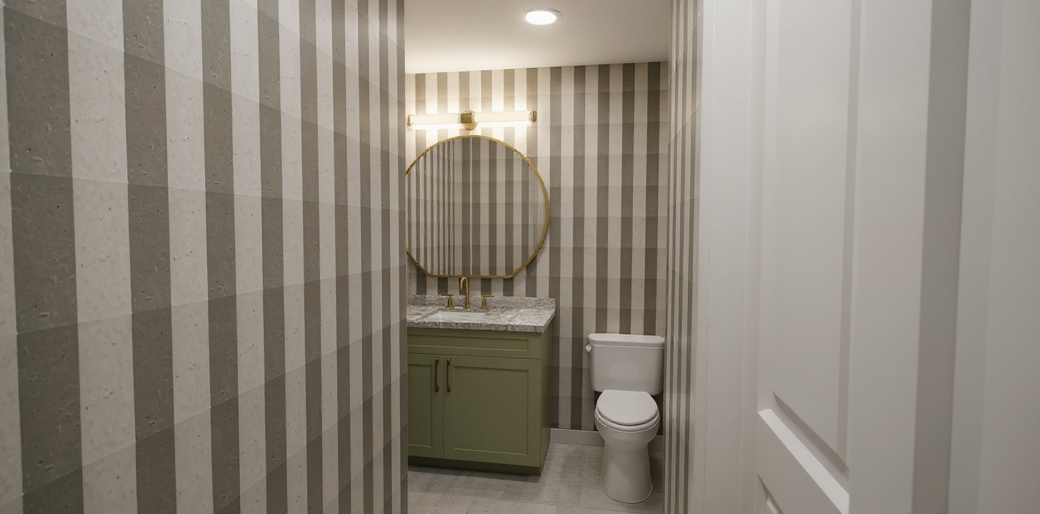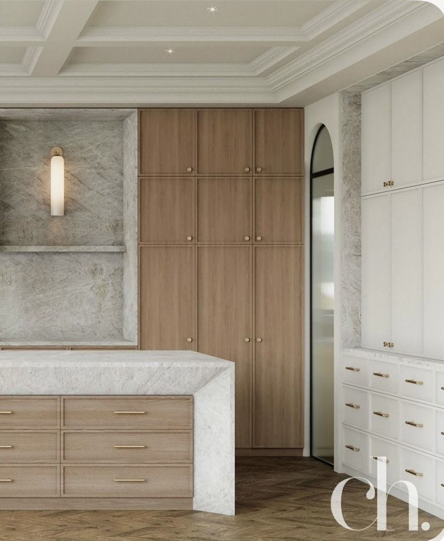 create a realistic rendering exactly as shown but change all the wood cabinetry and wood island to be the same painted as the wall cabinets on the right hand side