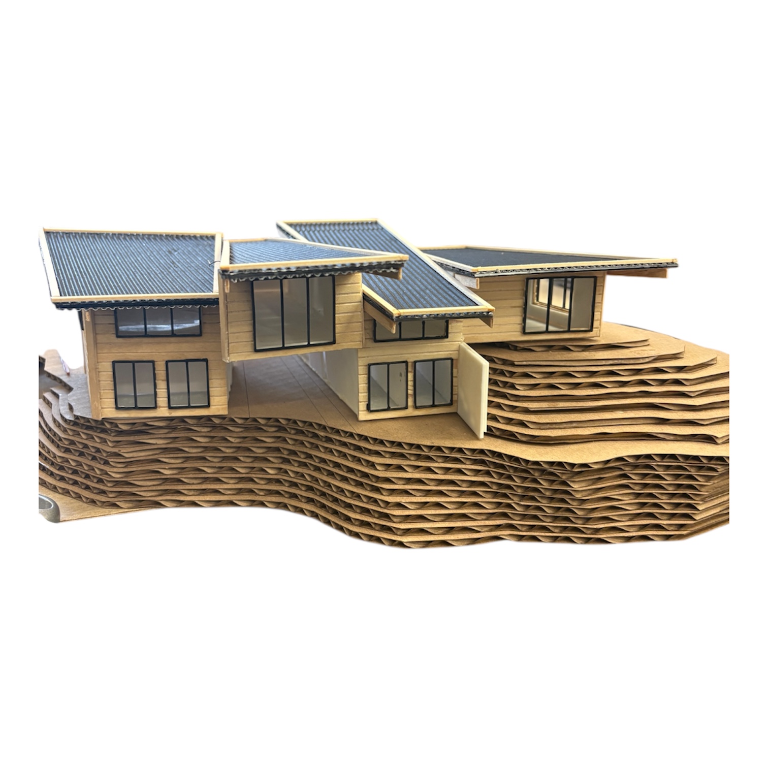 the building is surrounded by a forest of pine trees the building is sitting on a mountain build looks hyper realistic watercolor