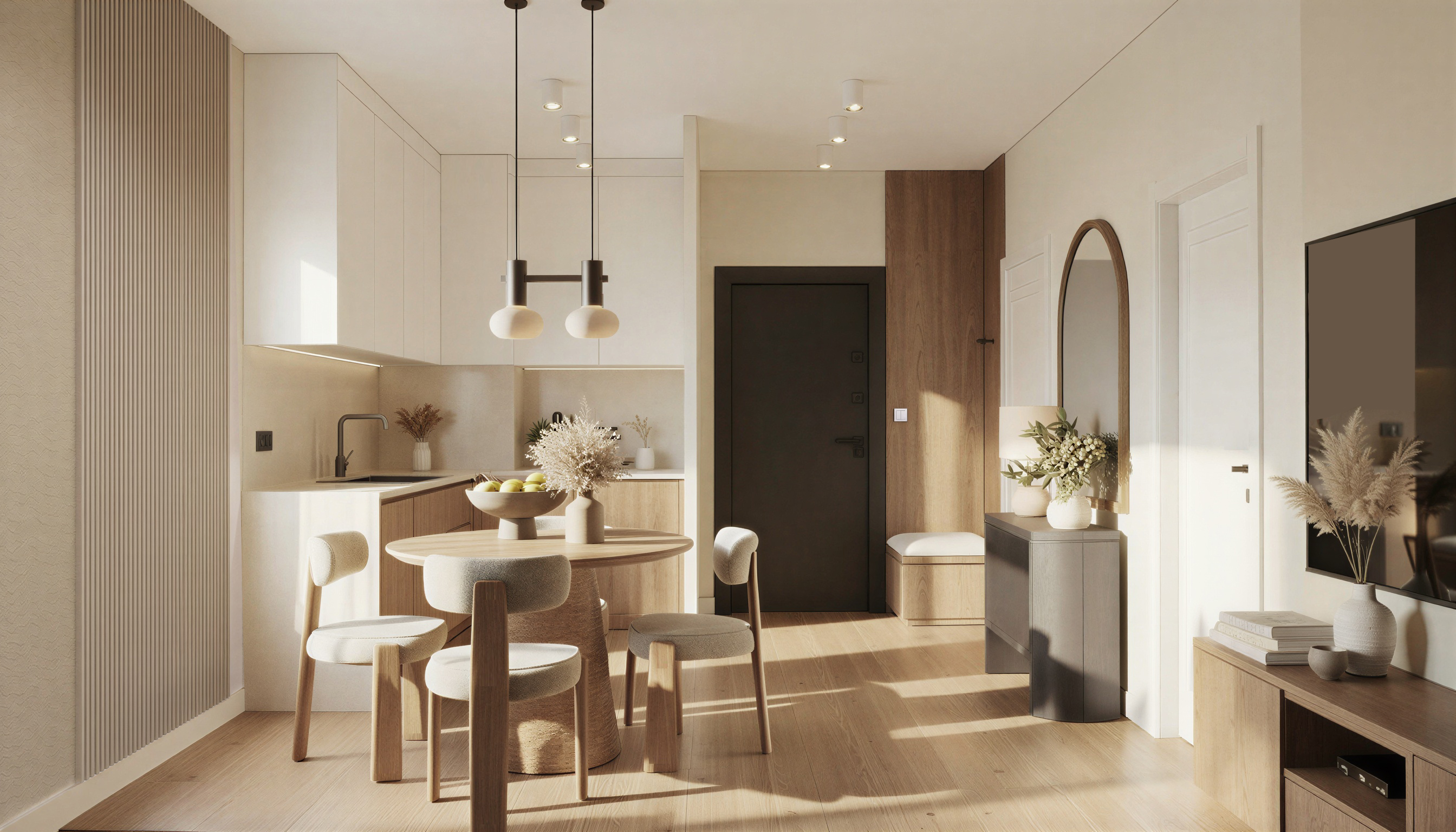 change only the slatted wall panels on the left side to white do not modify anything else in the image keep the entire interior layout furniture colors lighting materials proportions and all other elements exactly the same