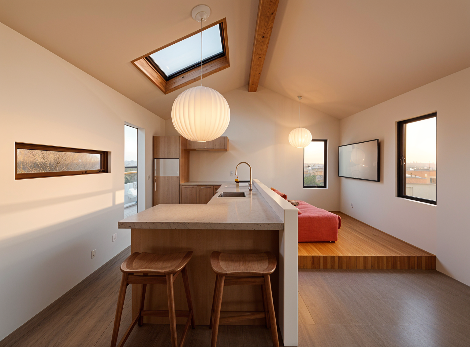 interior shot realistic rendering of an indoor climbing space with a monkey bridge climbing wall and suspended net keep all geometry layout and objects exactly as in the sketchup model do not move delete or add anything a person or child may be walking on the monkey bridge naturally the climbing wall must have real climbing wall material with visible texture and grips the floor should have shock absorbing mats the suspended net should be visible and realistically tensioned safe for climbing or playing include windows with natural daylight coming in casting soft shadows and creating a bright immersive indoor atmosphere use realistic materials wood ropes metal rubber grips foam mats as in the model no artistic or stylized effects keep it clean detailed and photo realistic