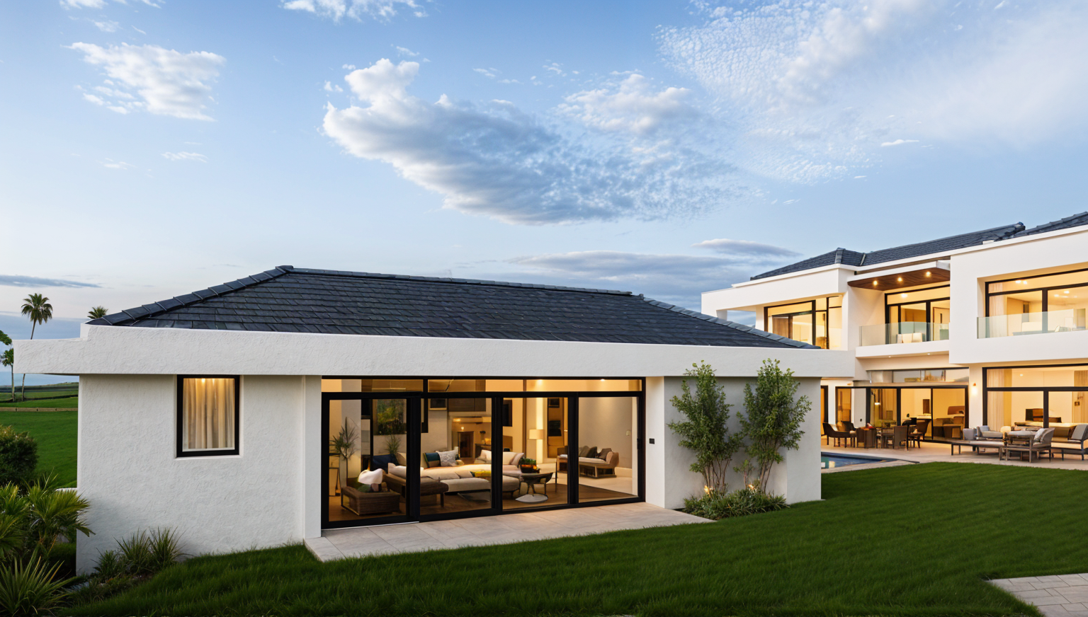 villa ramatuelle toit plat avec fa ade en enduit la chaux jardin de mediterrann e romarin thym piscahier olivier escalier en traverses de chemin de fer entre la piscine et la maison eau de la piscine teinte gris vert