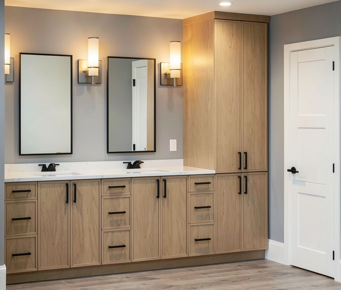 white window trims large timber frame aesthetics add a cupola and some landscaping make realistic make siding board and batten pine move cupola to peak of roof line driveway along front of house off the porch 2 car garage on left side no garage doors on this front side this is an old bank barn we are converting to a residence remove all vehicles and buildings from background add a large dormer on the front trees in the distant background view from lower side of bank 2 large dormers walkout basement with a patio and a large deck with railing and stairs to lower level