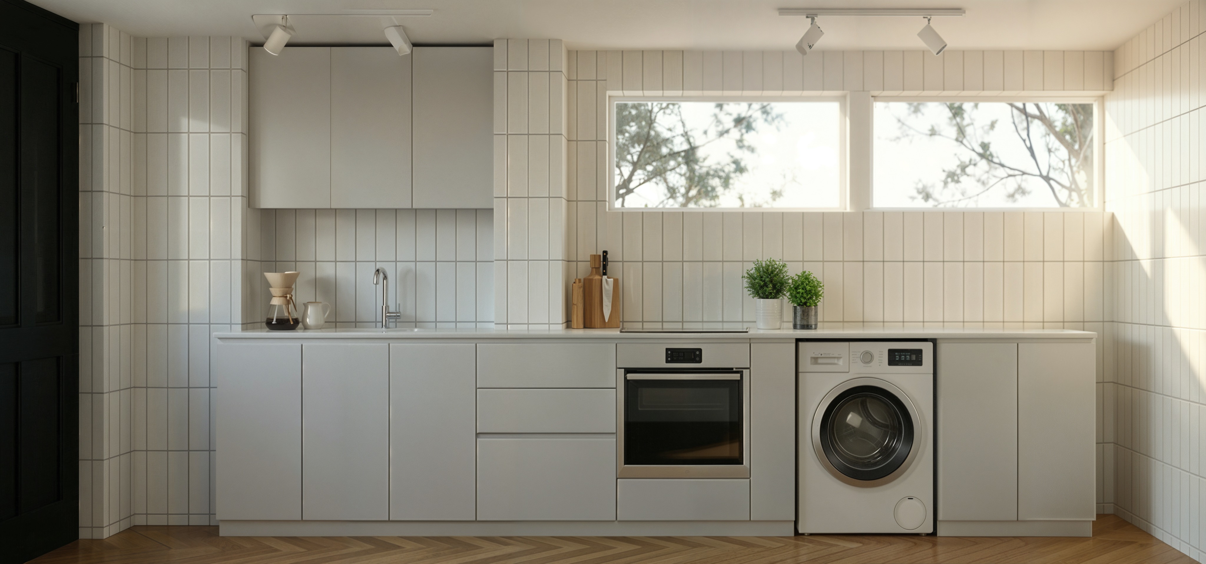 add a water heater on the left wall next to the cabinetry the ducts of the water heater must be white