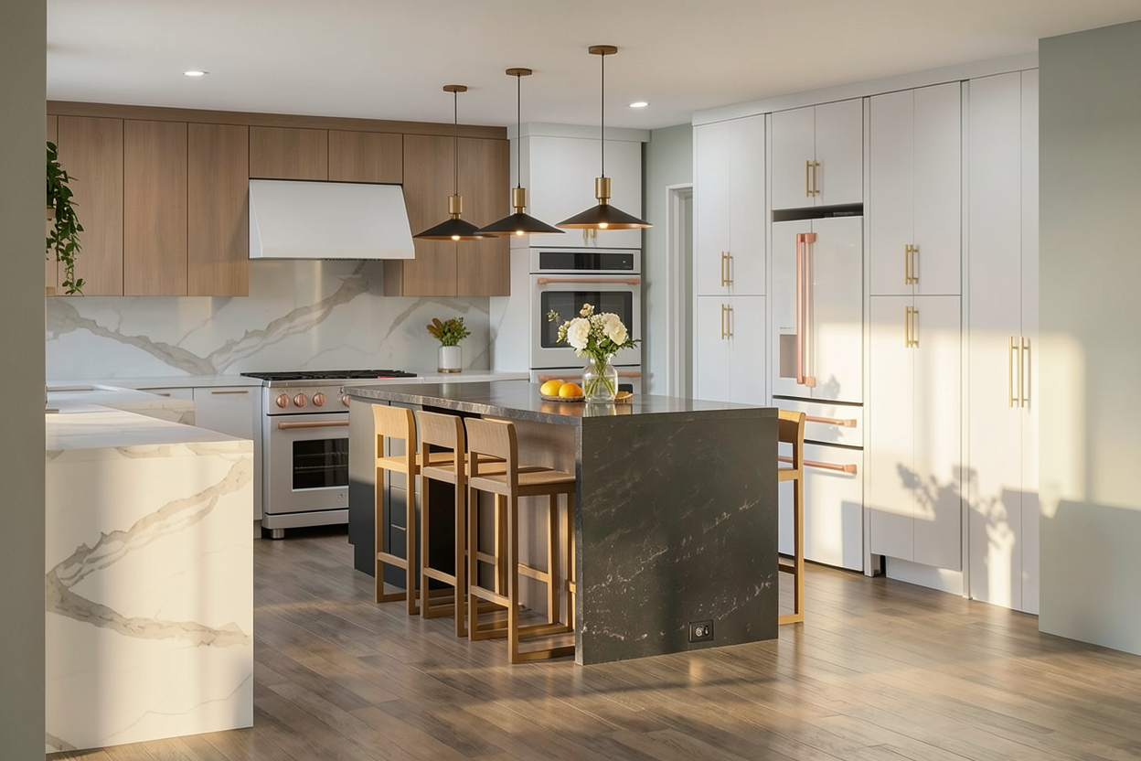 ultra photorealistic interior photograph of a bathroom the floor is a taupe grey brown field tile laid in a horizontal subway the led mirror should be dimly lit and 3000k the can lights should provide bright light maintain the exact architecture layout and finishes from the original render materials should appear highly realistic shot as professional interior architecture photography with a full frame camera 24mm lens shallow but natural depth of field extremely high dynamic range crisp focus subtle lens imperfections and natural exposure style similar to high end architectural photography seen in a design magazine ultra detailed photorealistic materials ray traced lighting global illumination cinematic composition natural color grading realistic textures professional interior photography do not change layout no redesign no extra windows no people no clutter no surreal lighting no warped geometry