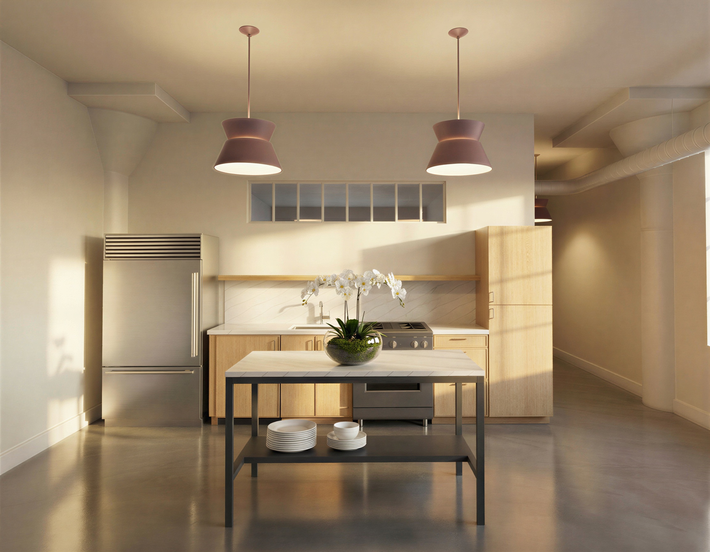 show vertically ribbed glass in window panes above kitchen wall do not change any geometry do not change any elements do not change camera angle do not change lighting do not change view