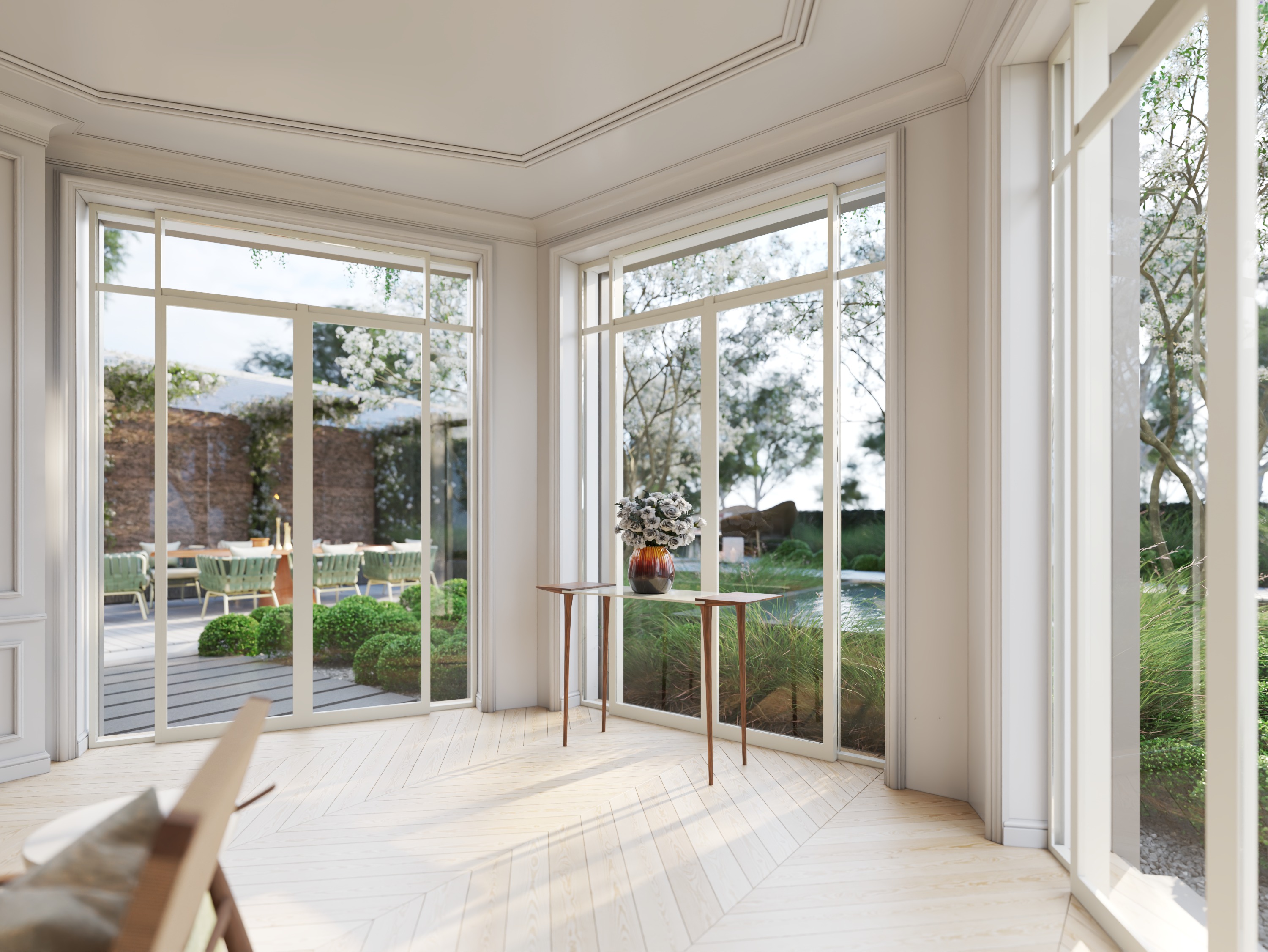 enhance the realistic texture and morning dawn lighting with interior lighting turned on with soft light maintain the elements material and angle of the picture