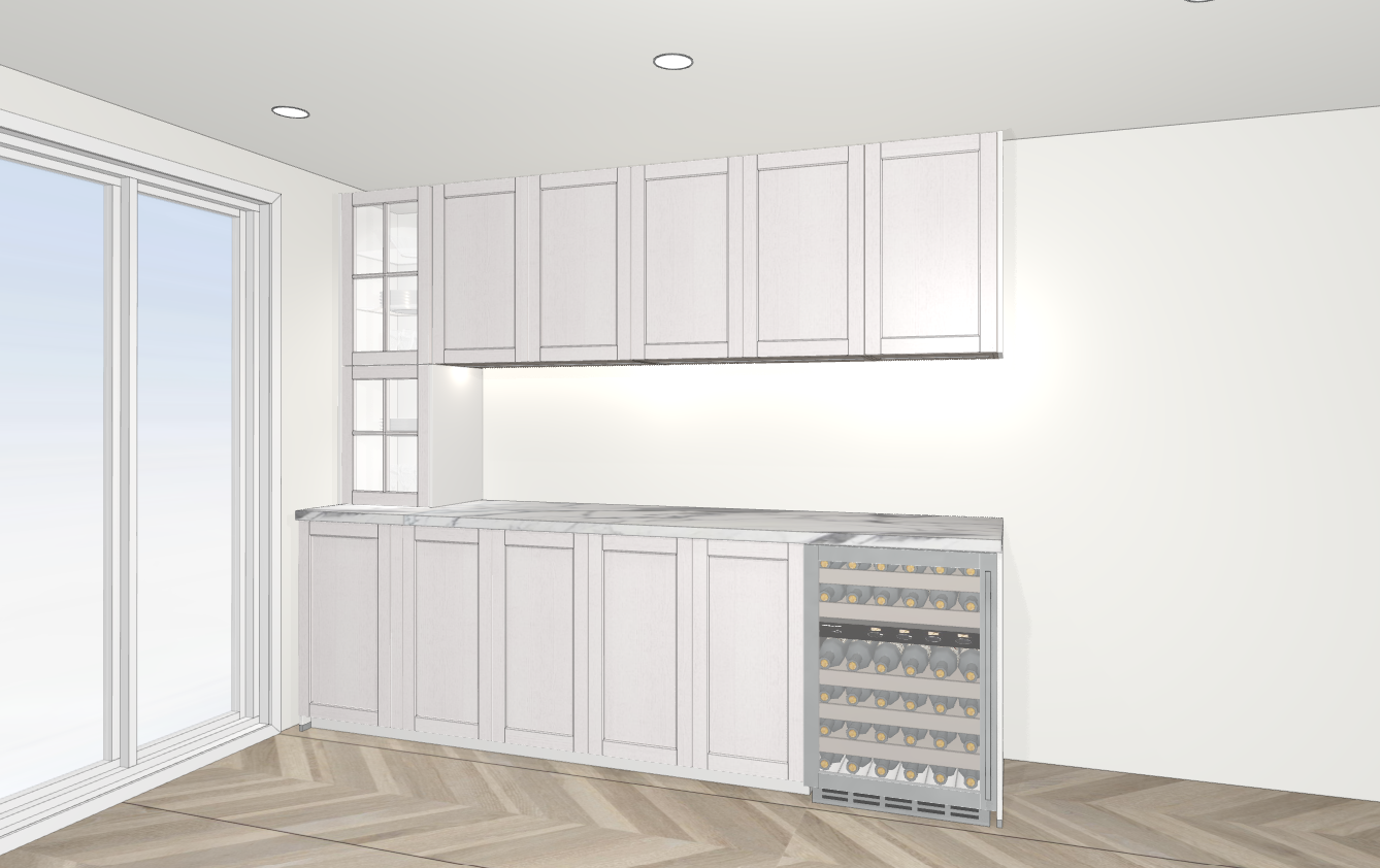elegant bar white with some glass cabinets no handles