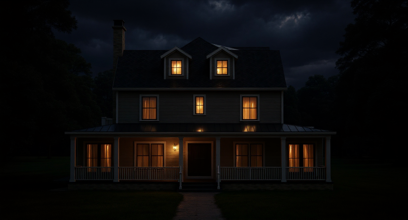i m trying to decide what color to make the house can you put a combination together i m thinking a darker color to give it a moody look make it nice and sunny outside also change the metal roof to shingles put the house in the mountains make it a grey color