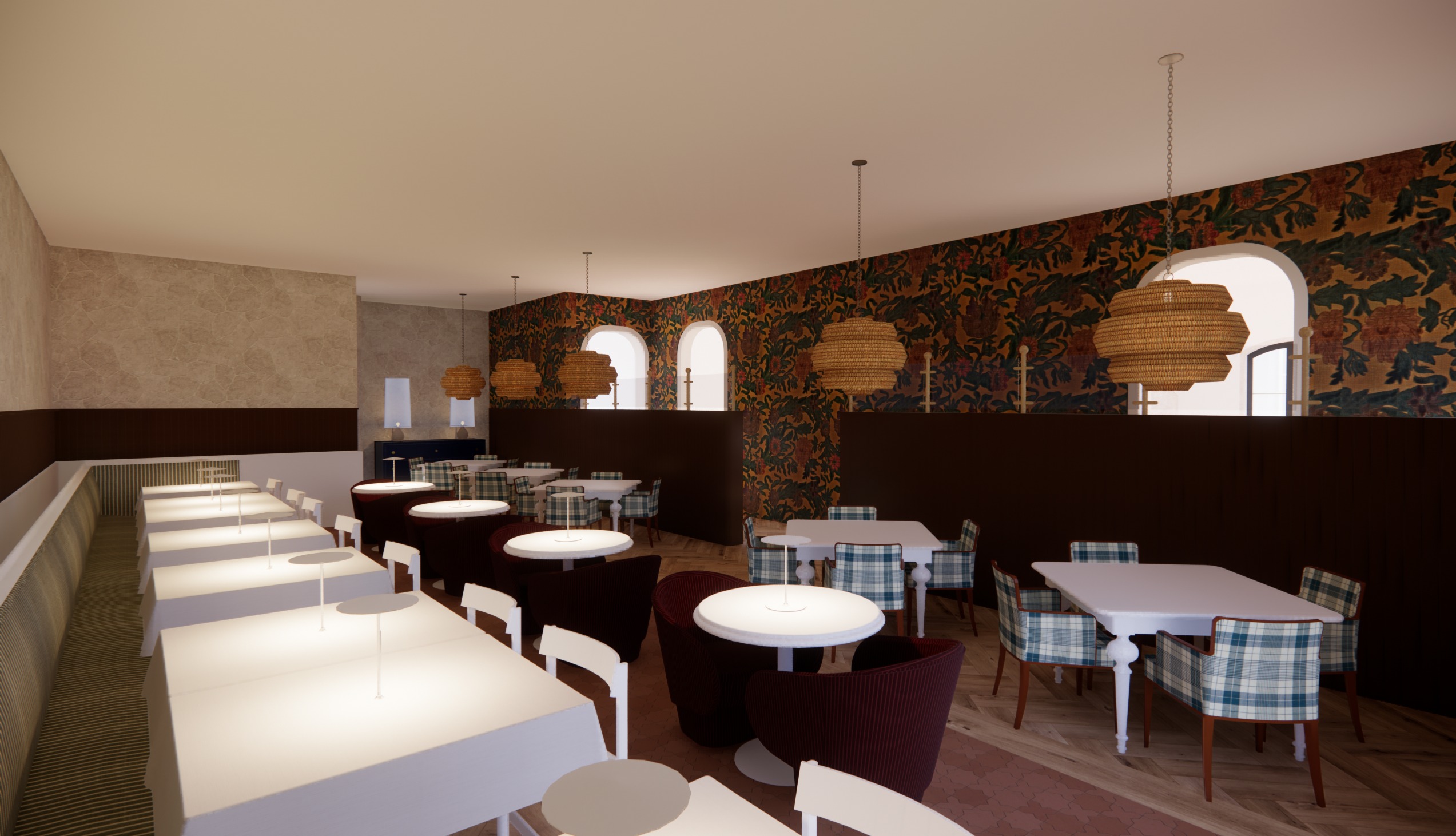 add lavender and other hanging plants from the ceiling they should be hanging on rustic beams that horizontally spread across the ceiling