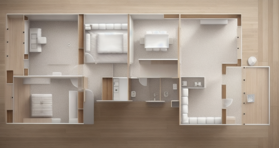 convert this floor plan into a minimalist isometric 3d view of a full house show the space from an elevated angle with furniture walls and details visible modern architectural floor plan with a sleek minimalist design use light wood textures for the floors soft white for the walls and smooth gray for the furnishings incorporate a comfortable inviting atmosphere with warm lighting highlight the open living spaces and ensure a crisp clean look throughout use the same furniture as shows on the plan do not change the orientation of the floorplan