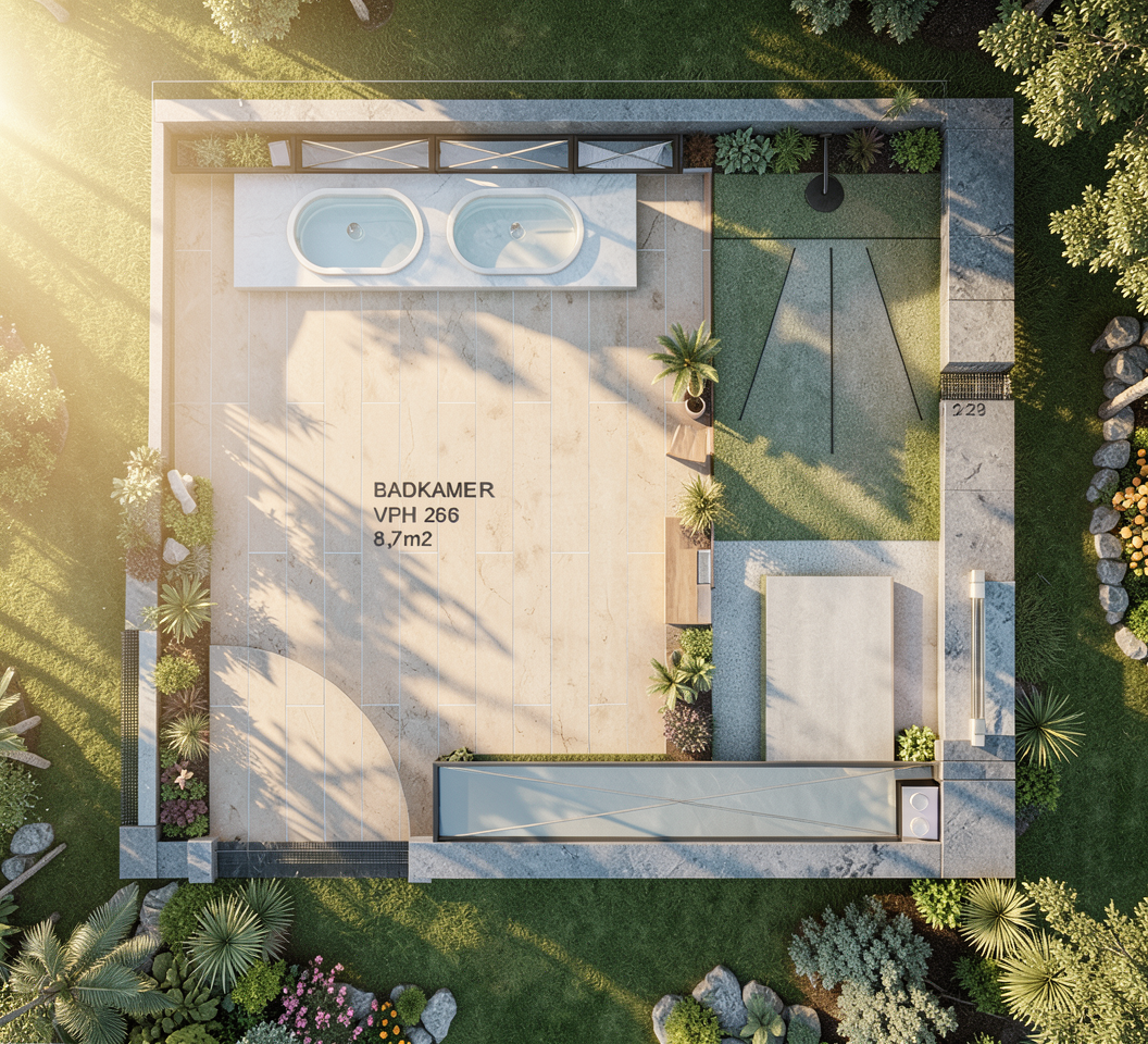 please create a realistic corner perspective view of a single family home based solely on the photo provided camera at eye level focal length 35 45 mm natural daylight soft shadows neutral smooth background semi realistic architectural visualization style clean and minimalistic scene no surrounding elements
