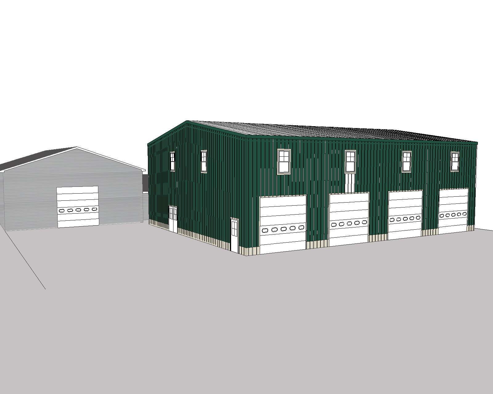 photo realistic image with a new concrete driveway in front of garage doors and concrete to the left side