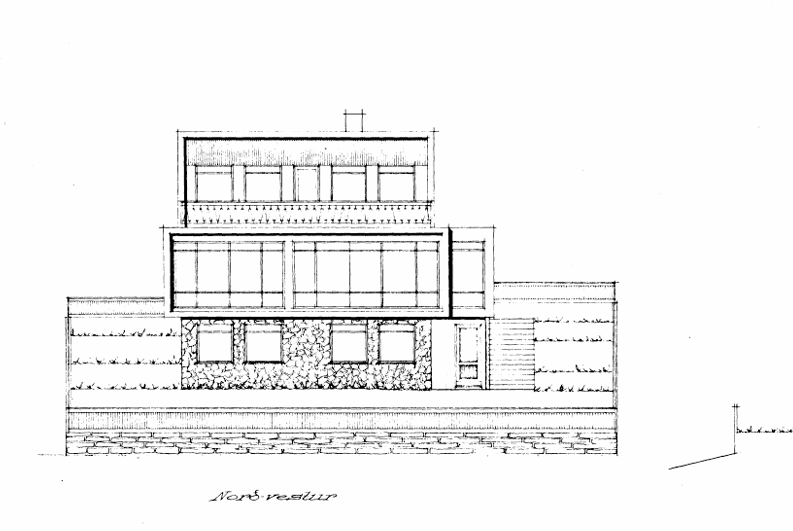 stone walls on the basement enlarge the second floor windows to be floor to ceiling rest to the house should be with a white frame and navy blue walls