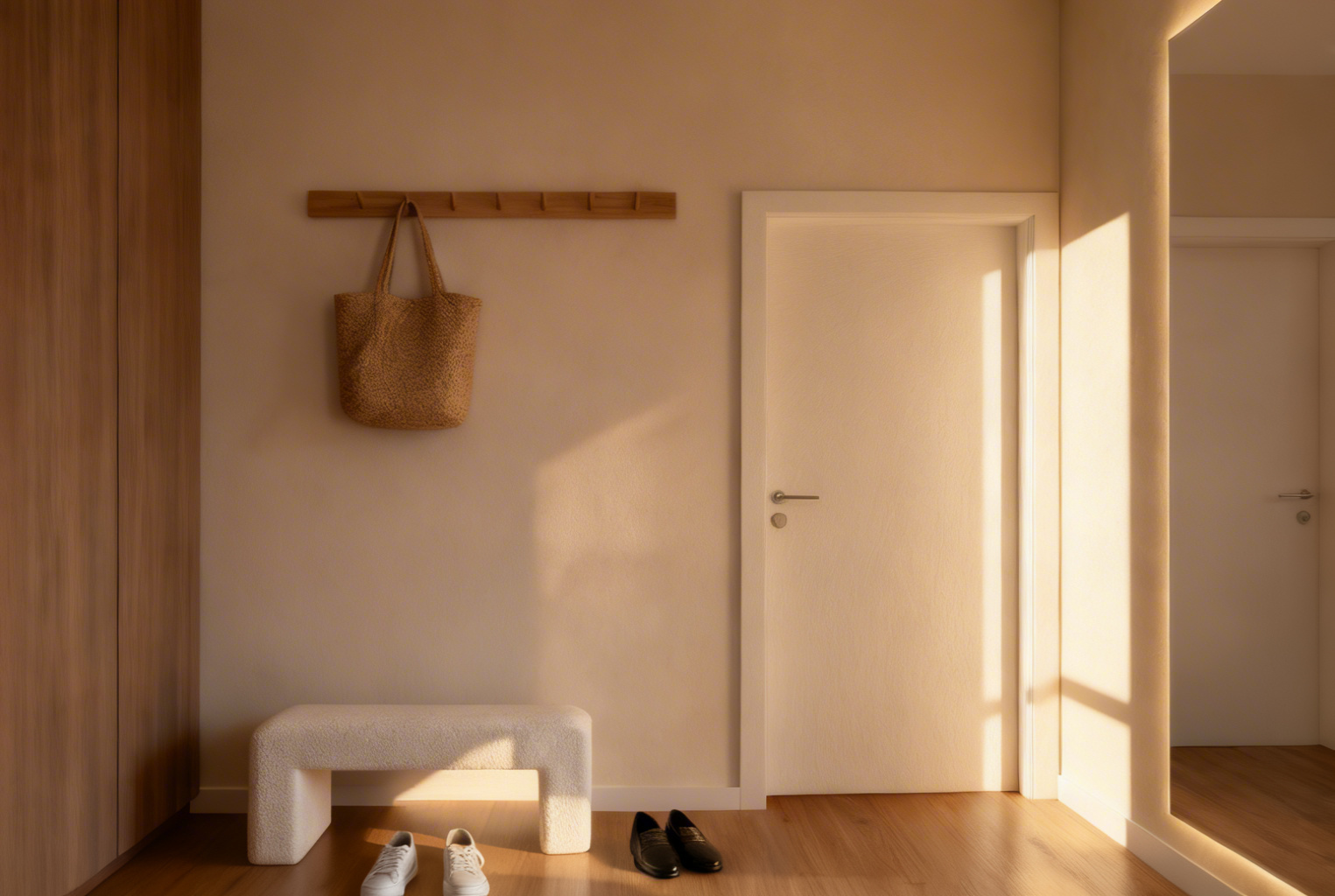 interior from the top create a clean top down floor plan bird s eye interior view based on the provided base layout the view should be strictly from above 90 degree angle showing walls partitions doors windows and all interior elements clearly maintain accurate proportions and dimensions according to the given plan include clearly defined walls e g gypsum drywall partitions bathroom elements bathtub toilet sink placed realistically furniture layout where applicable doors with swing direction minimal but clear material differentiation tiles wood etc style architectural visualization style not overly artistic clean modern neutral colors high clarity and sharp lines soft shadows for depth but keep it technical and readable avoid perspective distortion this must look like a professional interior top view plan optional add subtle textures tiles in bathroom flooring in other areas keep layout uncluttered and easy to read architecture