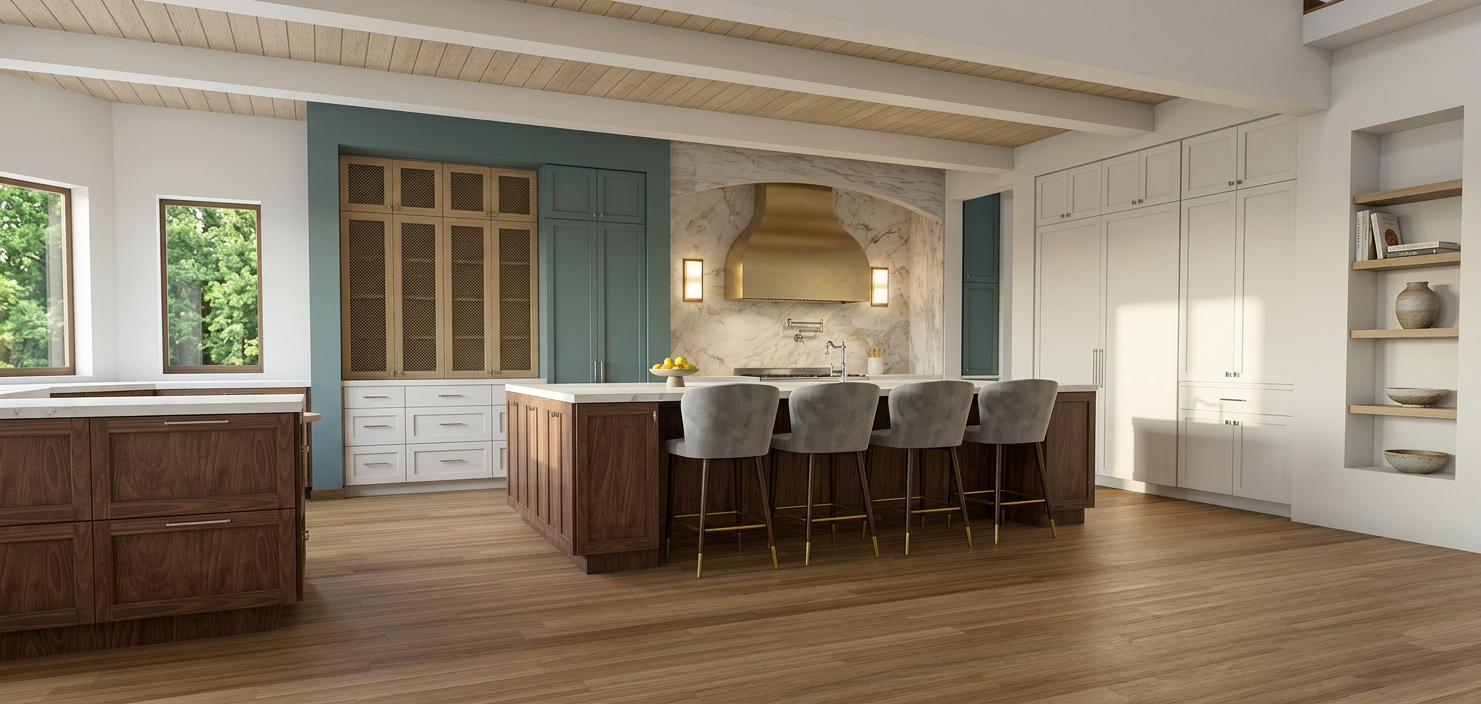 exterior shot sunny with clouds modern city behind trees behind the house grey roof architecture