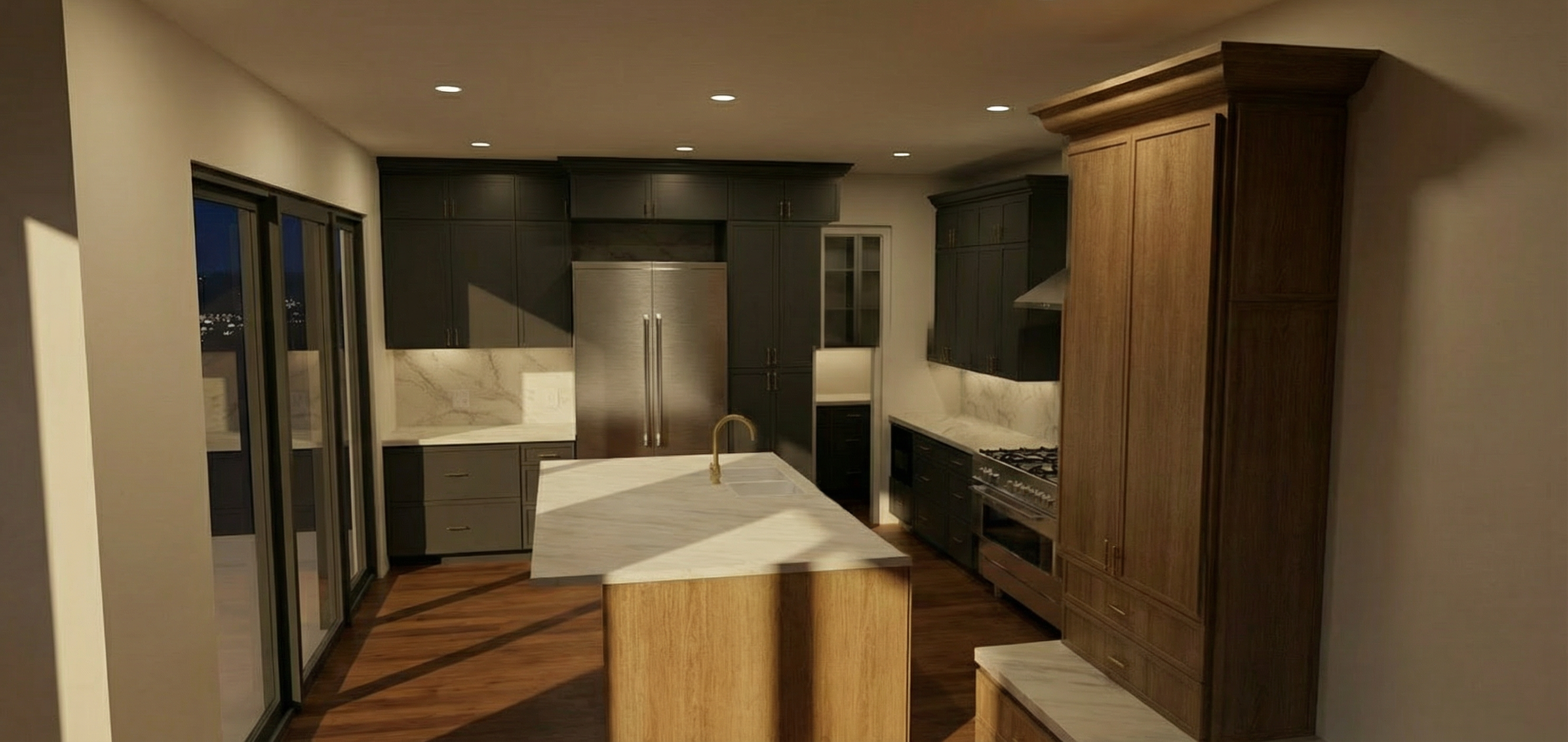 remove sunlight shadows the scene should be night with overhead lights on at a warm white 3 000k temperature