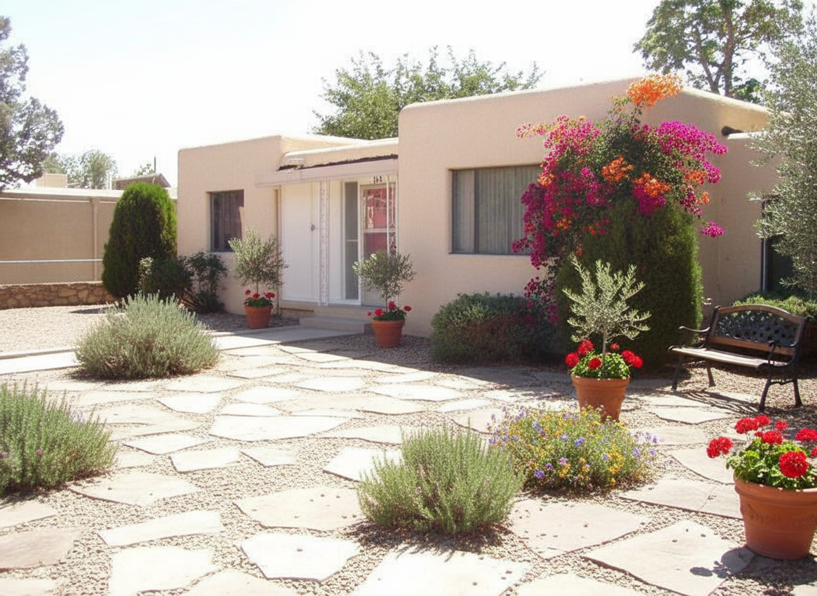 can you please include a japanese style garden in front with maple tree ensure the driveway is a turnabout and the ramps leading up to the garage doors are clad in asphalt