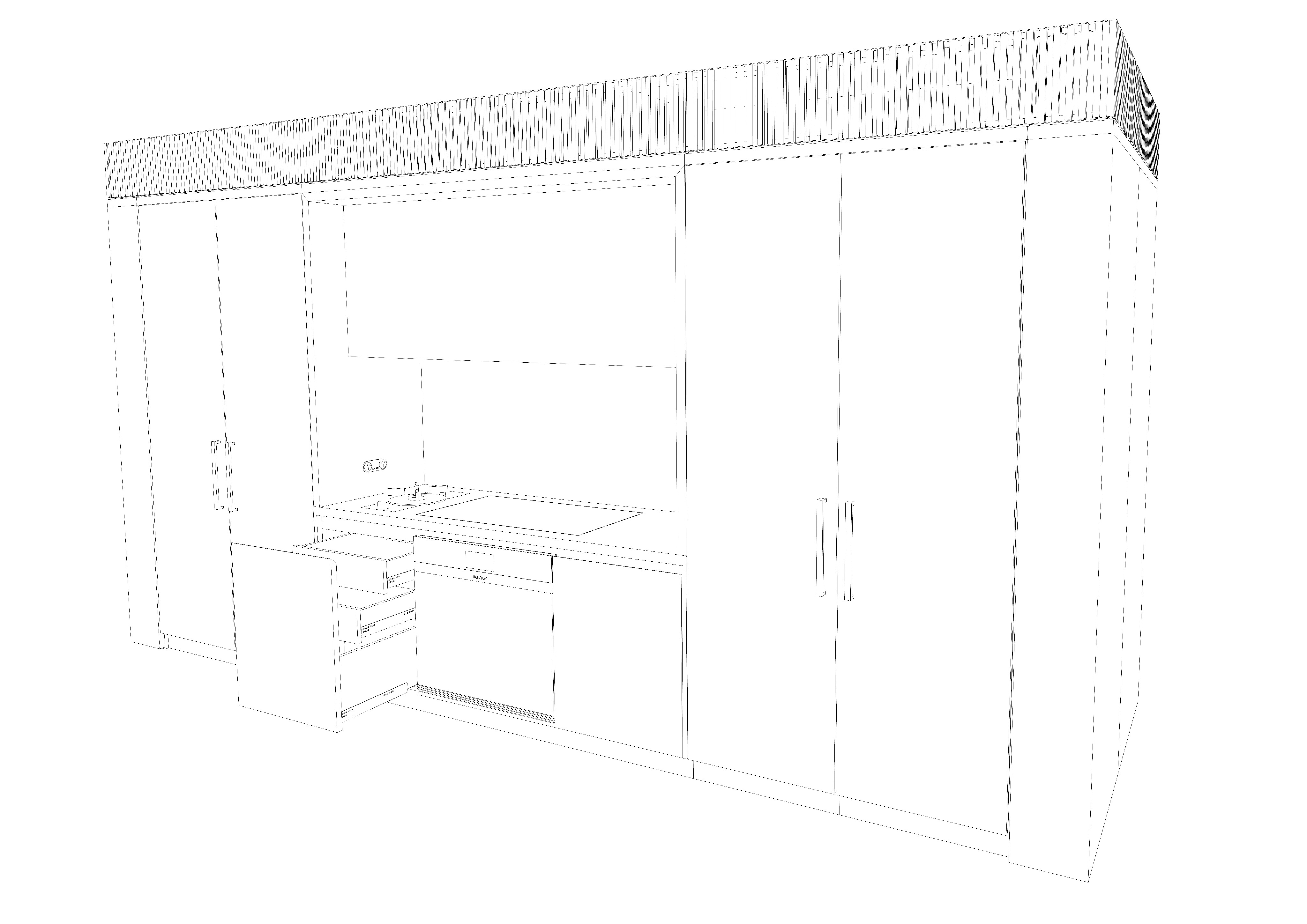 1 material authority summary all materials and finishes listed below are extracted directly from the uploaded shop drawing pdf page 01 has been treated as the primary authority 2 material index table lam1 r hmr stn5 tmv1 int1 only five material codes appear in the finishes schedule 3 detailed material definitions material code lam1 application internals substrate mdf thickness 18mm finish name verbatim colour tbc melamine finish tbc finish type melamine surface sheen not specified edge treatment matching 1mm abs edge supplier laminex country brand context not specified primary use visibility internal notes colour and finish not confirmed material code r hmr application kick frame substrate hmr particleboard thickness 18mm finish name verbatim raw finish type raw hmr pb surface sheen none raw edge treatment not specified supplier tbc country brand context not specified primary use visibility internal structural notes none material code stn5 application benchtop oh face stone shroud splashback substrate stone thickness 20mm finish name verbatim marble antigua gris leathered finish finish type natural marble surface sheen leathered edge treatment not specified supplier gmw stone country brand context not specified primary use visibility external notes none material code tmv1 application doors drawer fronts kick face wall panel ac grille border substrate mdf thickness 19 26mm finish name verbatim american oak veneer wide leaf narrow crown dark walnut finish finish type timber veneer surface sheen not specified edge treatment matching 0 5mm veneer edge supplier briggs veneer country brand context not specified primary use visibility external notes g1s g2s noted in schedule material code int1 application bh frame substrate hmr particleboard thickness 18mm finish name verbatim white hmr pb finish type melamine on hmr pb surface sheen not specified edge treatment not specified supplier polytec country brand context australian laminate supplier inference based on brand marking as contextual only primary use visibility internal notes none 4 supplier texture authority links only provided where supplier is explicitly stated and finish is specific enough to be traceable if not marked not confirmed lam1 supplier url not confirmed colour and finish tbc r hmr supplier url not confirmed supplier tbc stn5 supplier url not confirmed gmw stone does not provide a standardised online catalogue for antigua gris tmv1 supplier url not confirmed briggs veneer catalogue contains multiple american oak variants exact product not identifiable int1 supplier url not confirmed polytec white hmr pb is a generic product class not a specific finish 5 finish behaviour flags for rendering control lam1 grain direction none grain matching importance low reflectivity low texture depth smooth r hmr grain direction none grain matching importance none reflectivity low texture depth smooth raw stn5 grain direction natural stone veining grain matching importance medium reflectivity low texture depth leathered tactile tmv1 grain direction linear directional grain matching importance high reflectivity low texture depth pronounced timber veneer int1 grain direction none grain matching importance none reflectivity low texture depth smooth 6 strict exclusions warnings no alternative veneer species permitted no alternative walnut tones permitted no generic timber textures permitted no polished or honed stone finishes permitted leathered only no substitute melamine suppliers permitted no reinterpretation of grain direction no colour substitutions for lam1 until tbc is resolved no generic marble textures permitted no substitution of antigua gris with other grey marbles no edge profile substitutions permitted 7 archsynth handoff block authoritative archsynth material override authoritative lam1 use 18mm mdf with colour tbc melamine and finish tbc apply matching 1mm abs edge supplier laminex render as smooth low reflectivity melamine with no grain r hmr use 18mm raw hmr particleboard supplier tbc render as raw unfinished substrate with no sheen stn5 use 20mm marble antigua gris with leathered finish supplier gmw stone render with natural stone veining low reflectivity tactile leathered texture tmv1 use 19 26mm american oak veneer wide leaf narrow crown on mdf dark walnut finish apply matching 0 5mm veneer edge supplier briggs veneer render with directional timber grain high grain matching importance low reflectivity int1 use 18mm white hmr pb supplier polytec render as smooth low reflectivity internal melamine strict exclusions no alternative species colours finishes suppliers or stone types no polished stone no generic timber or marble textures no grain reinterpretation