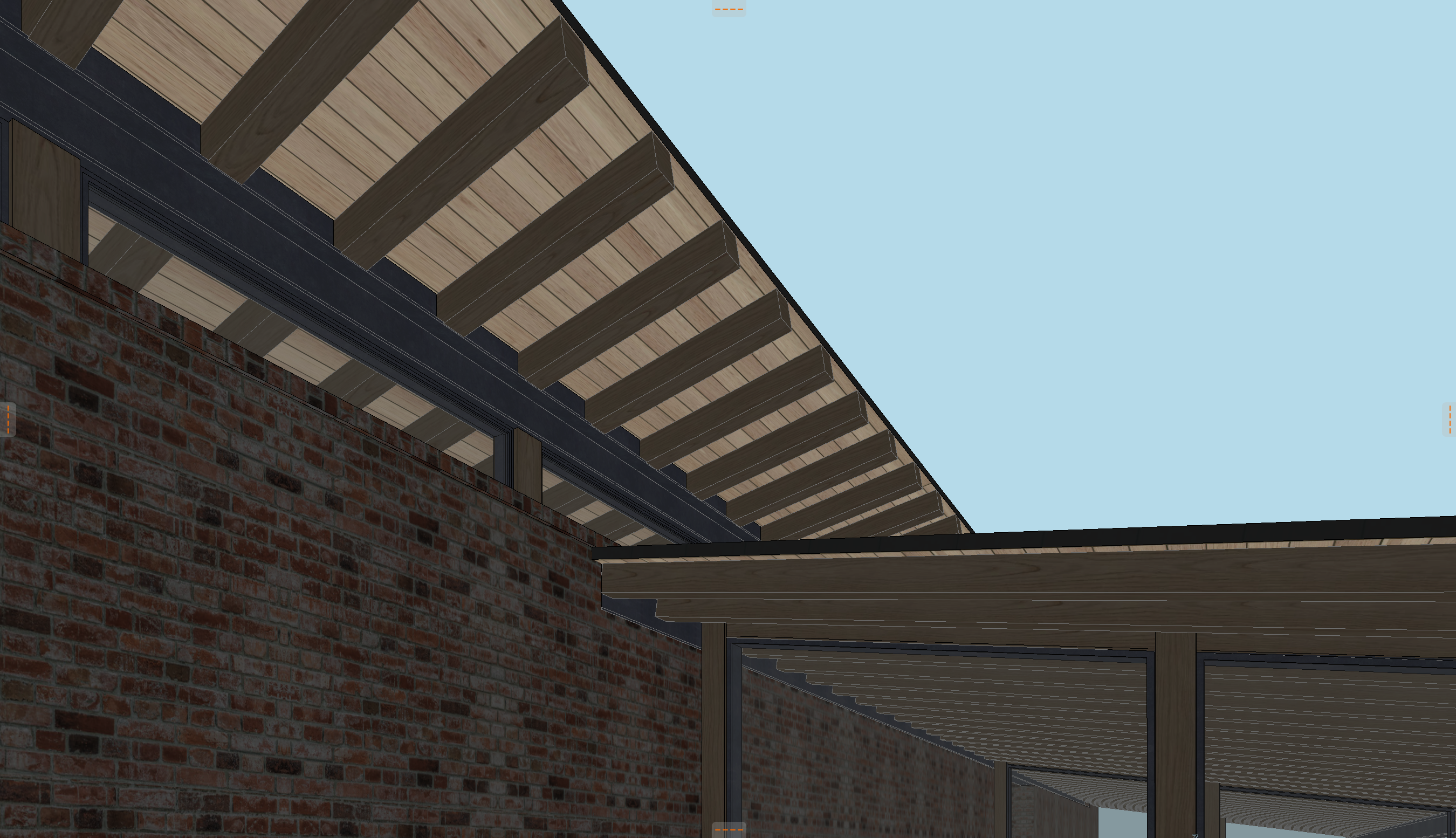 antique brick house with timber columns steel beams glass windows and a standing seam roof wild lousiana grasses add clouds in the sky