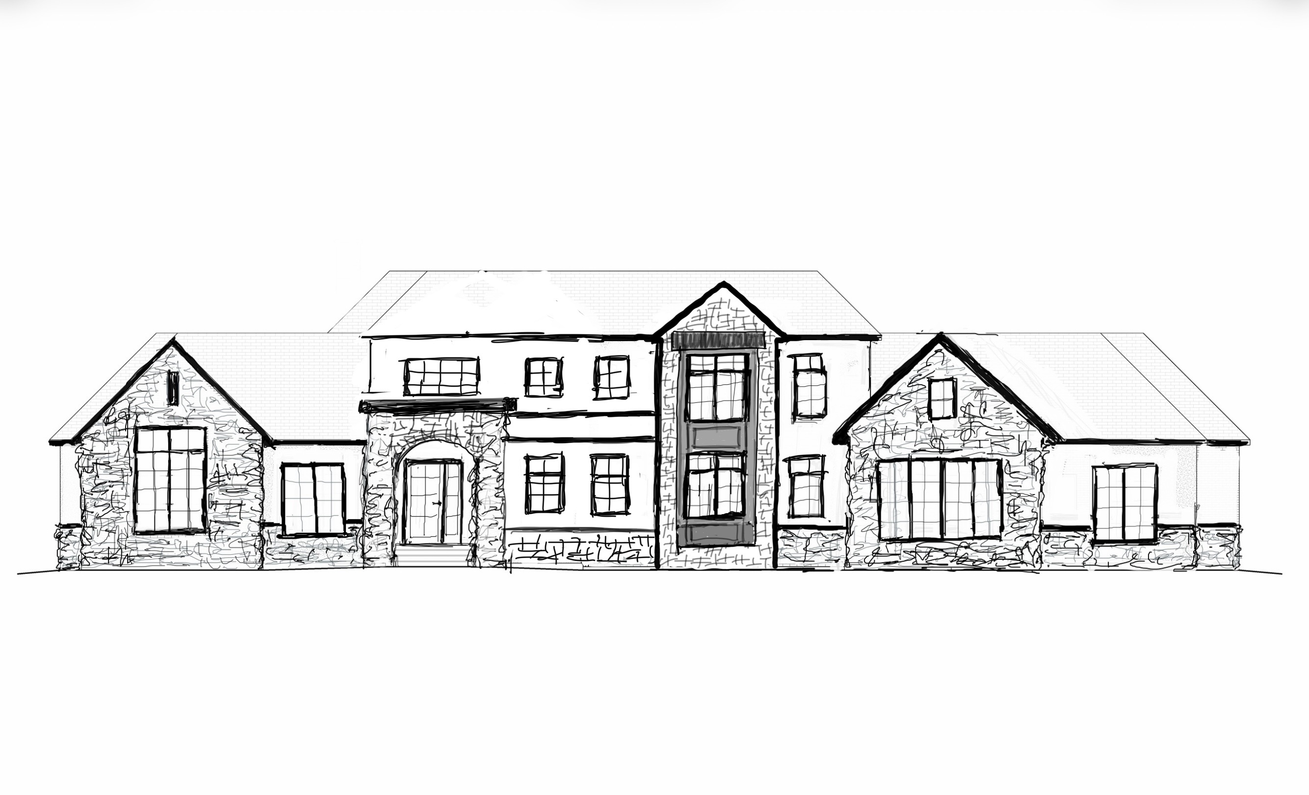 use lots of textures to render this exterior warm natural tones and whites make the roof dark make the landscaping look crisp and clean